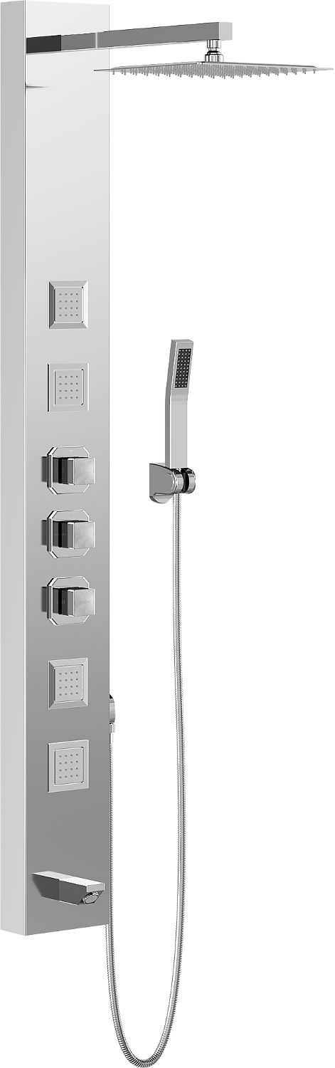 Chorro de agua estándar que imita la lluvia natural. Las gotas fluyen uniformemente sobre el cuerpo, envolviéndolo con una agradable sensación de hidratación y permitiendo sumergirse en una experiencia relajante y reconfortante para los sentidos durante el baño diario.