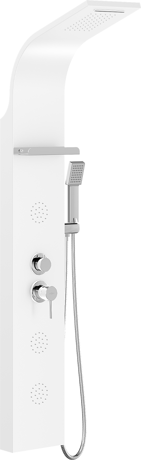 Chorro de agua estándar que imita la lluvia natural. Las gotas fluyen uniformemente sobre el cuerpo, envolviéndolo con una agradable sensación de hidratación y permitiendo sumergirse en una experiencia relajante y reconfortante para los sentidos durante el baño diario.
