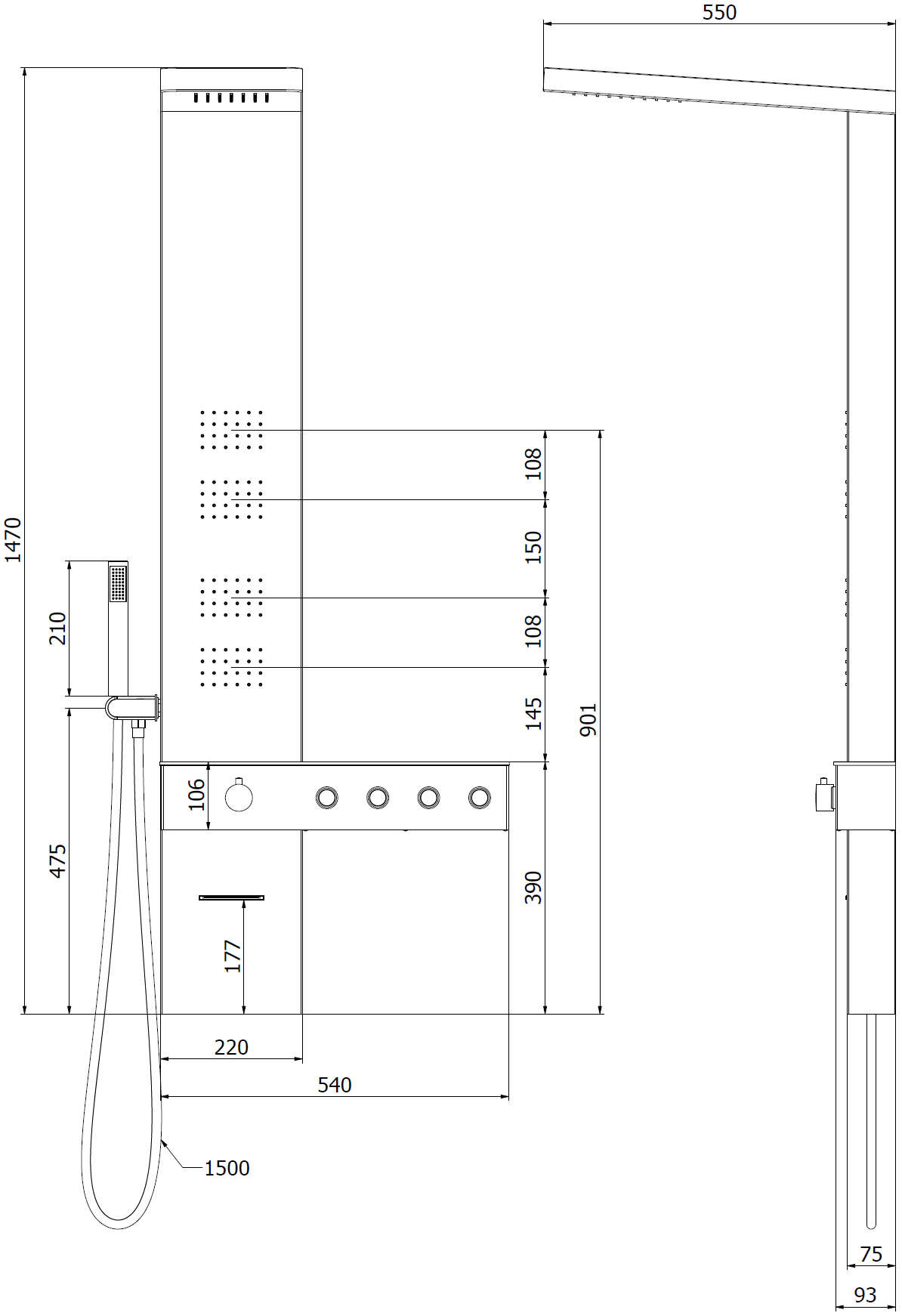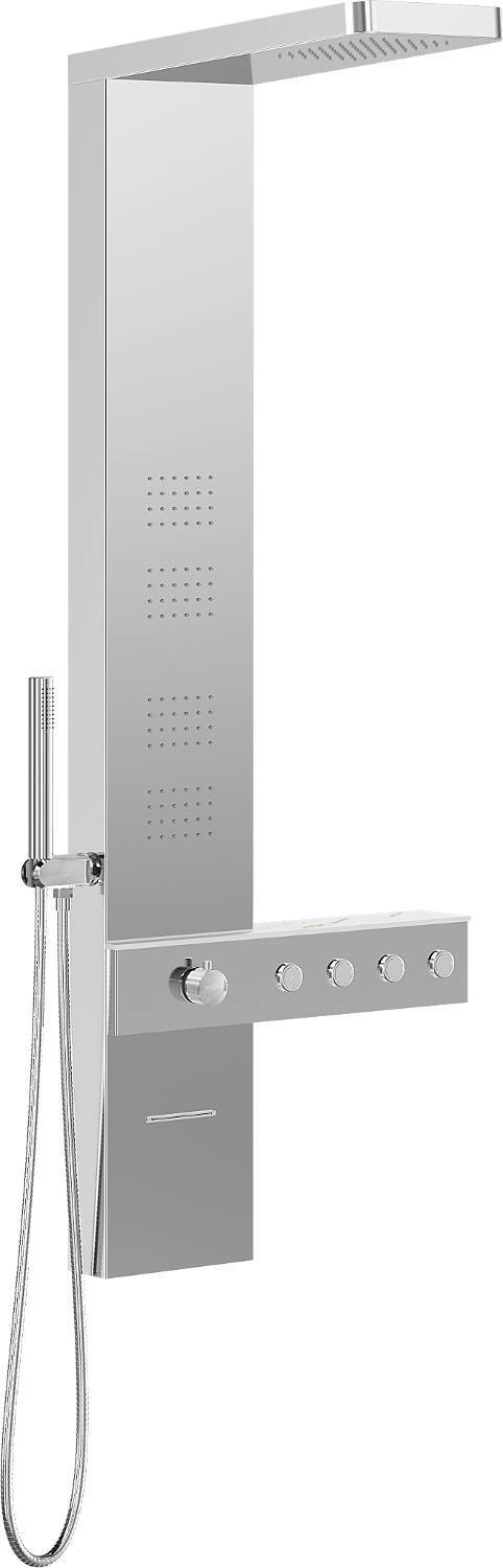 Chorro de agua estándar que imita la lluvia natural. Las gotas fluyen uniformemente sobre el cuerpo, envolviéndolo con una agradable sensación de hidratación y permitiendo sumergirse en una experiencia relajante y reconfortante para los sentidos durante el baño diario.