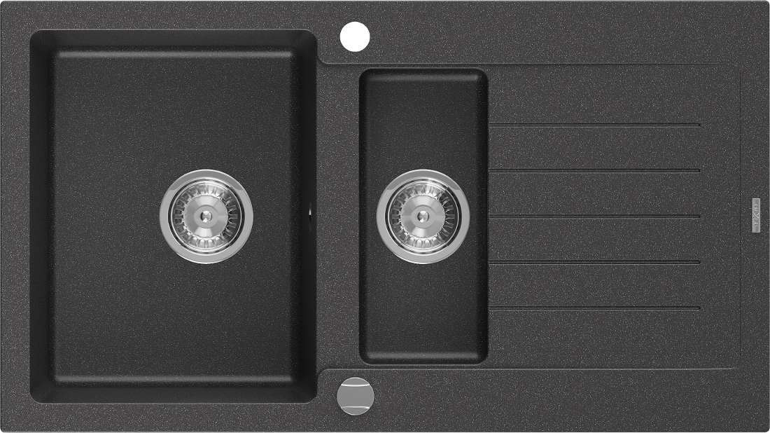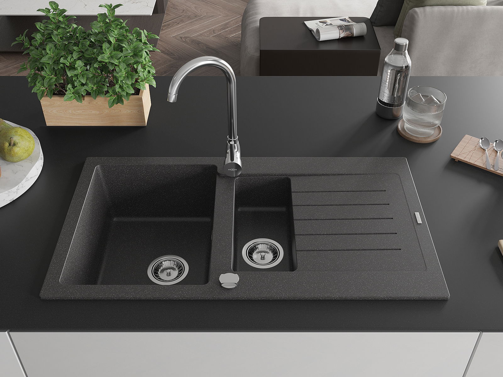 El fregadero está hecho de granito de alta calidad. Es un complemento elegante y, sobre todo, práctico para cualquier cocina, independientemente de su estilo. La alta calidad y durabilidad del granito aseguran un uso prolongado durante años.