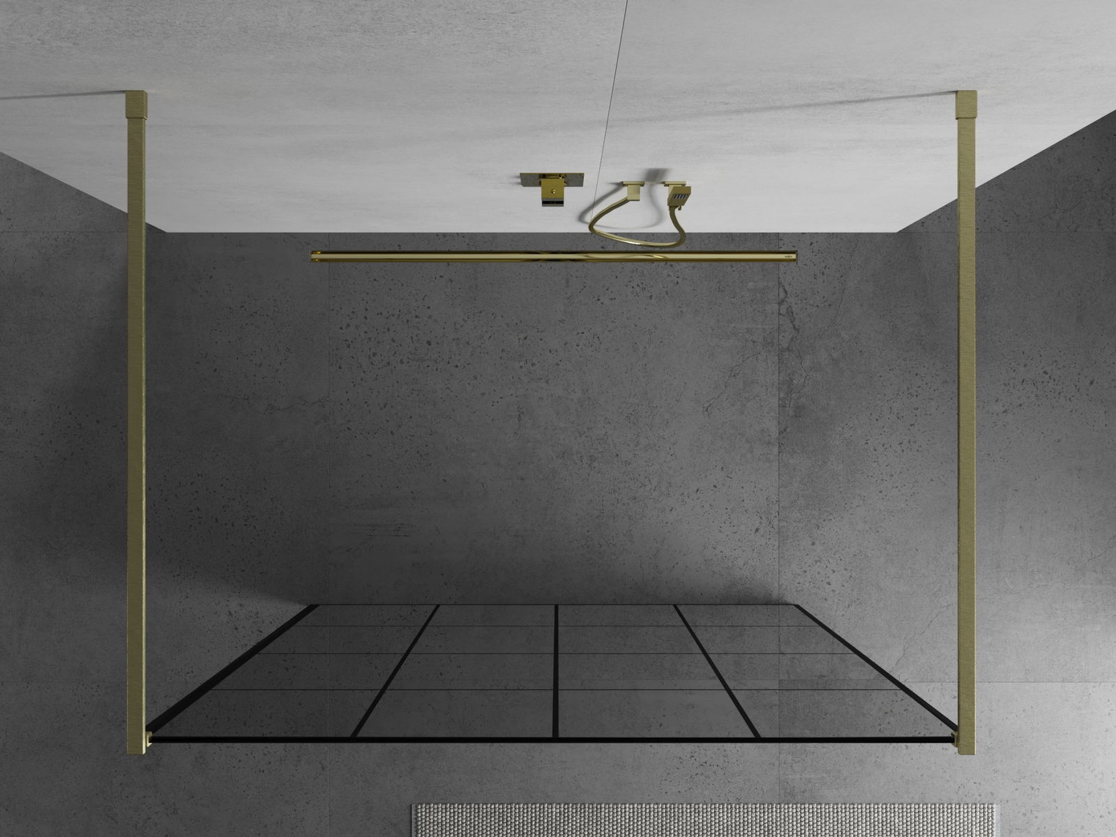Mexen Kioto mampara de ducha independiente 130 x 200 cm, cuadrícula negra 8 mm, dorado cepillado - 800-130-002-55-77