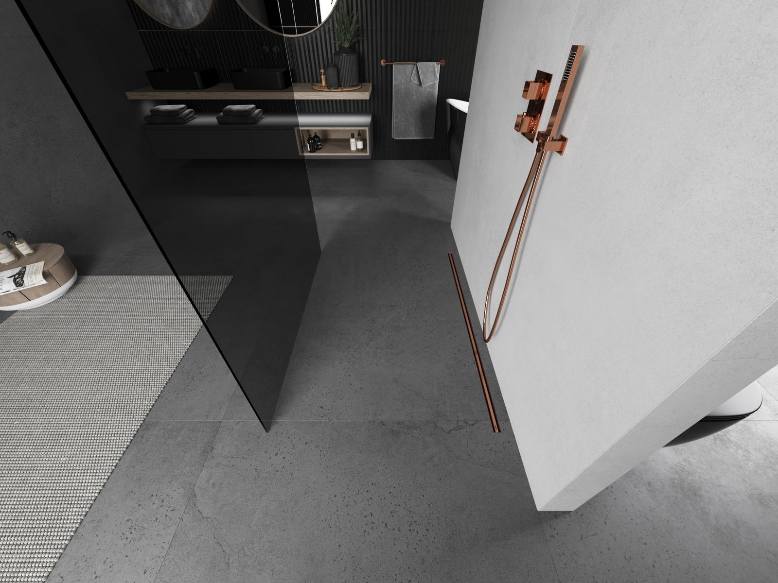 Mexen Kioto mampara de ducha independiente 100 x 200 cm, grafito 8 mm, cobre cepillado - 800-100-002-65-40