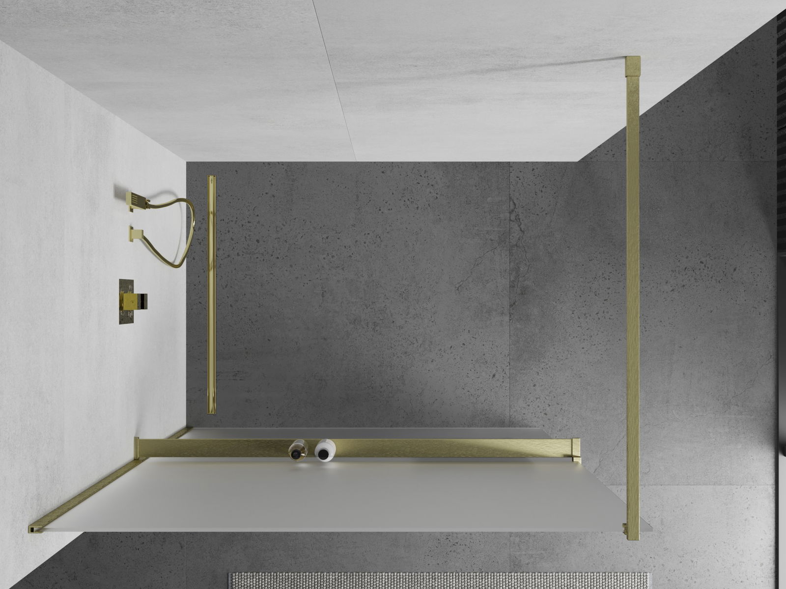 Mexen Kioto+ pared de ducha con estante Walk-in 140 x 200 cm, escarcha, oro cepillado - 800-140-121-55-30