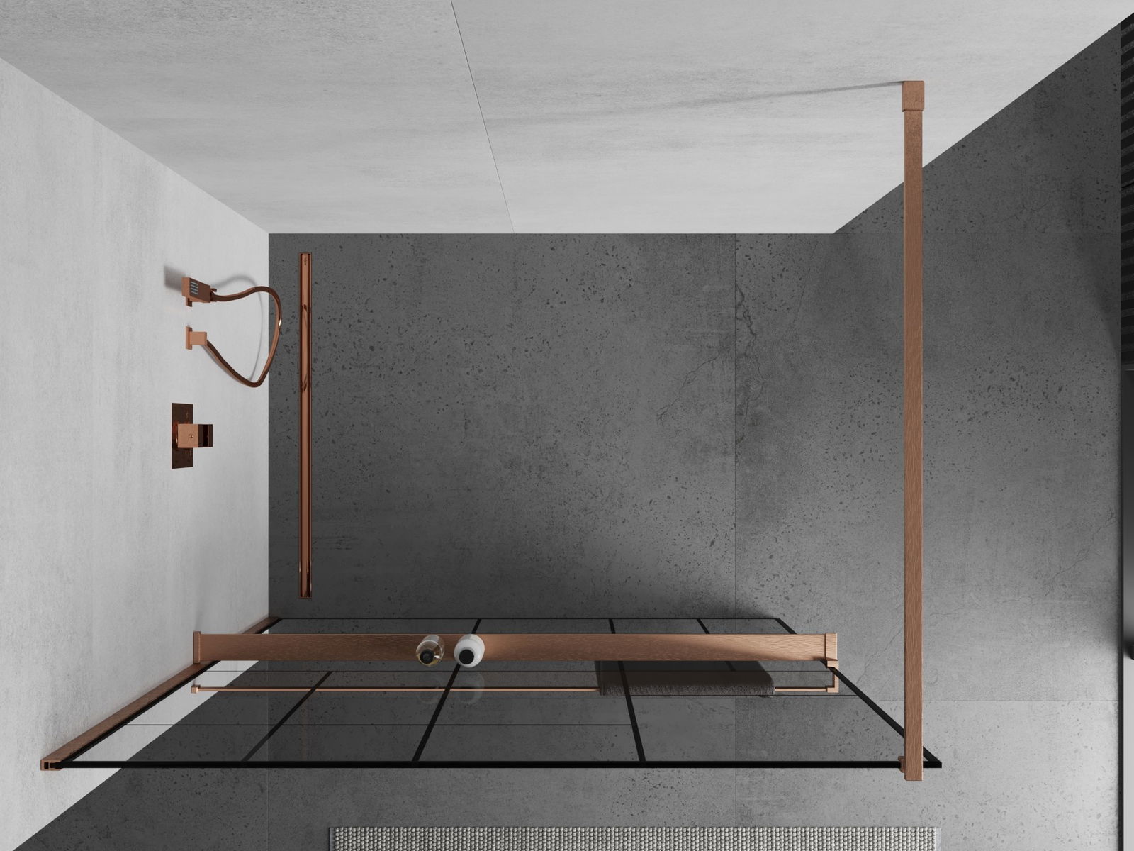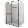 Mexen Kioto+ pared de ducha con estante Walk-in 140 x 200 cm, patrón negro, cobre cepillado - 800-140-121-65-78