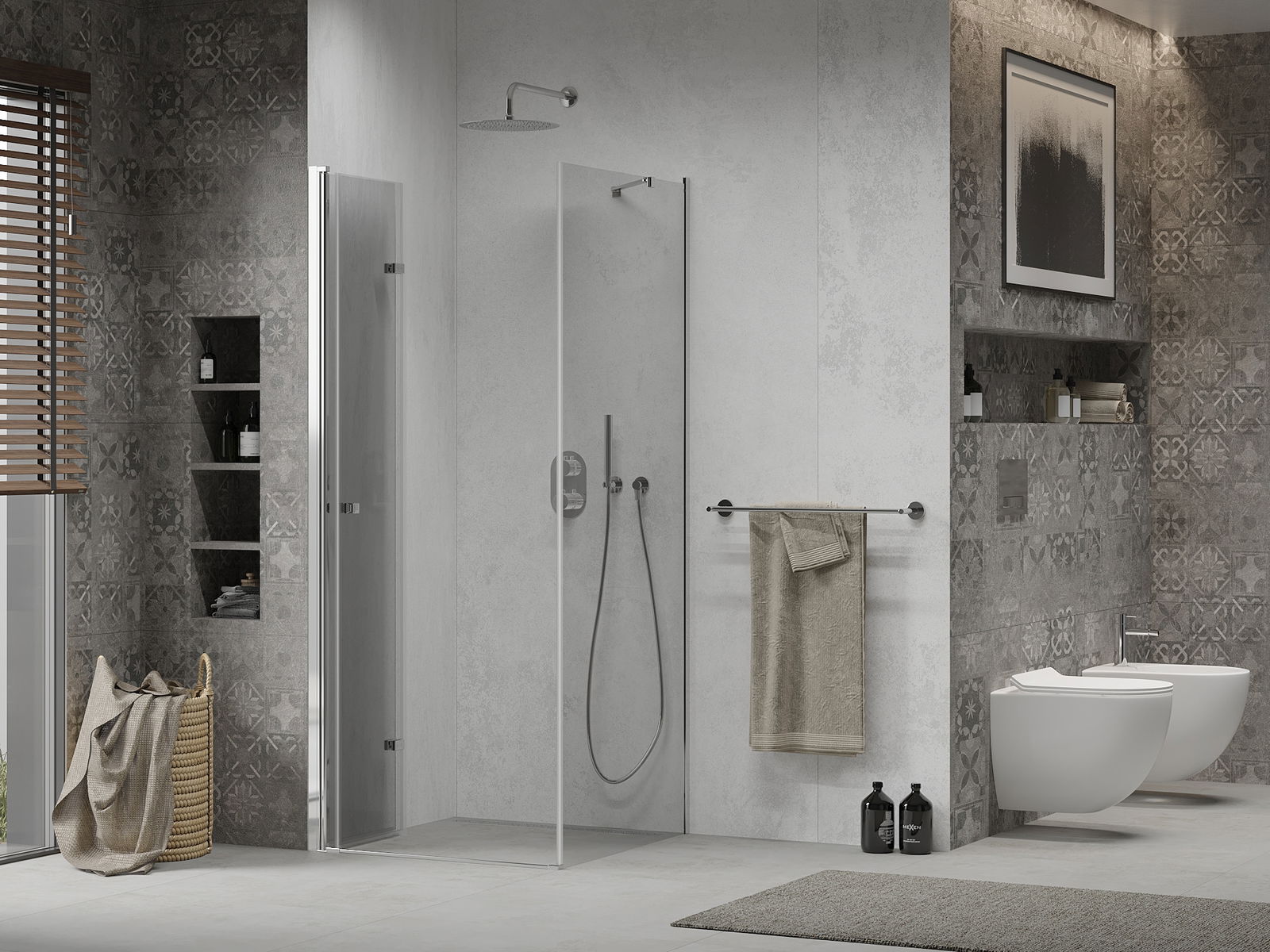 La posibilidad de plegar las puertas, tanto hacia afuera como hacia adentro, permite obtener más espacio cuando no se está utilizando la ducha. Es una solución ideal para baños más pequeños, aprovechando al máximo el espacio disponible.