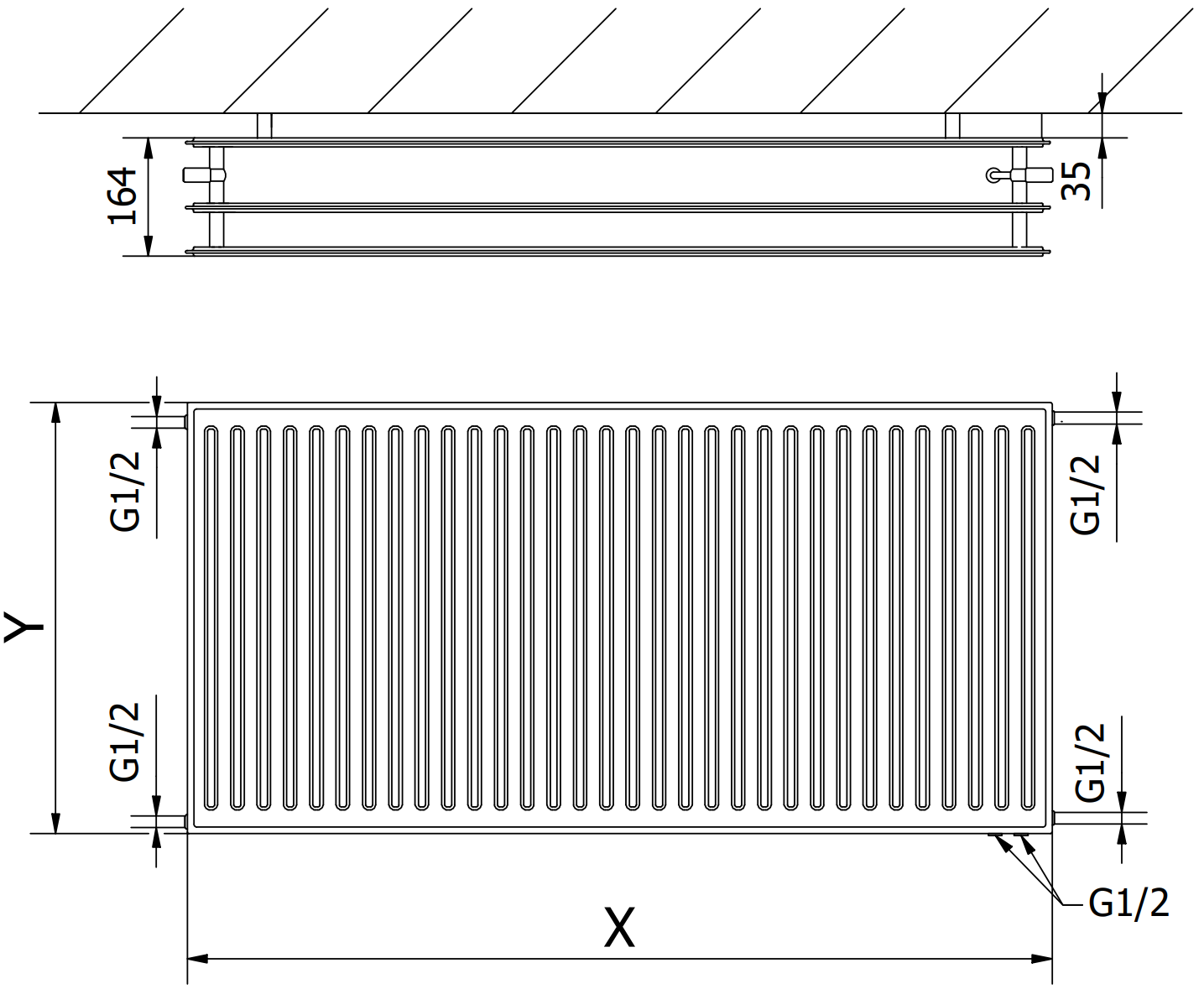 Las imágenes muestran el radiador en tamaño 600 x 1200 mm.