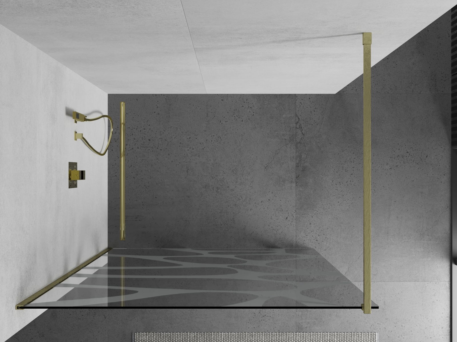 Mexen Kioto pared de ducha Walk-in 130 x 200 cm, ola blanca 8 mm, dorado cepillado - 800-130-101-55-97