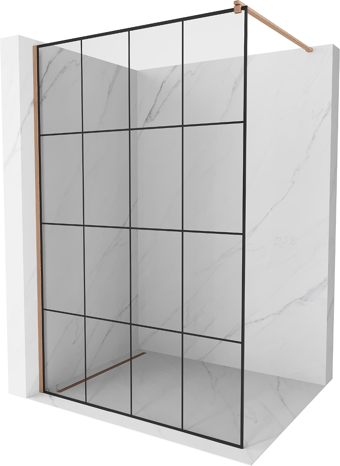 Mexen Kioto mampara de ducha Walk-in 130 x 200 cm, cuadrícula negra 8 mm, cobre cepillado - 800-130-101-65-77