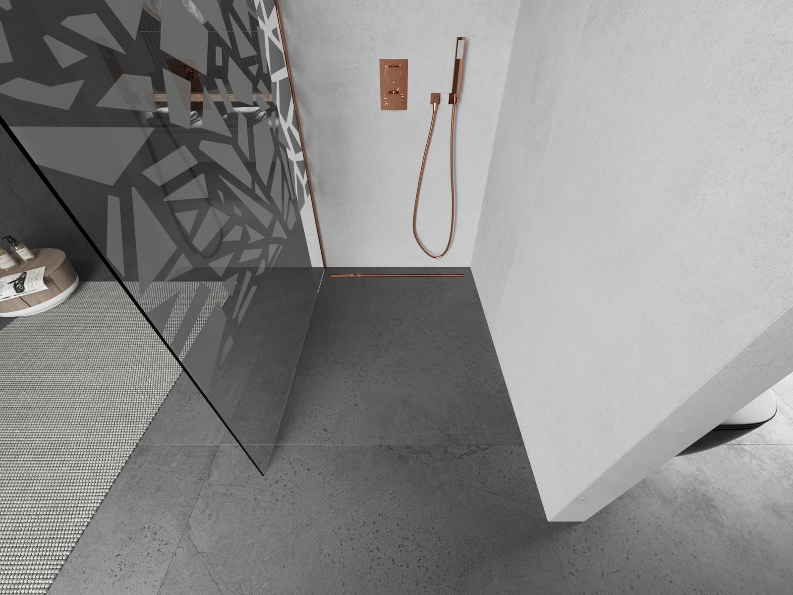 Mexen Kioto panel de ducha Walk-in 120 x 200 cm, patrón blanco 8 mm, cobre cepillado - 800-120-101-65-85