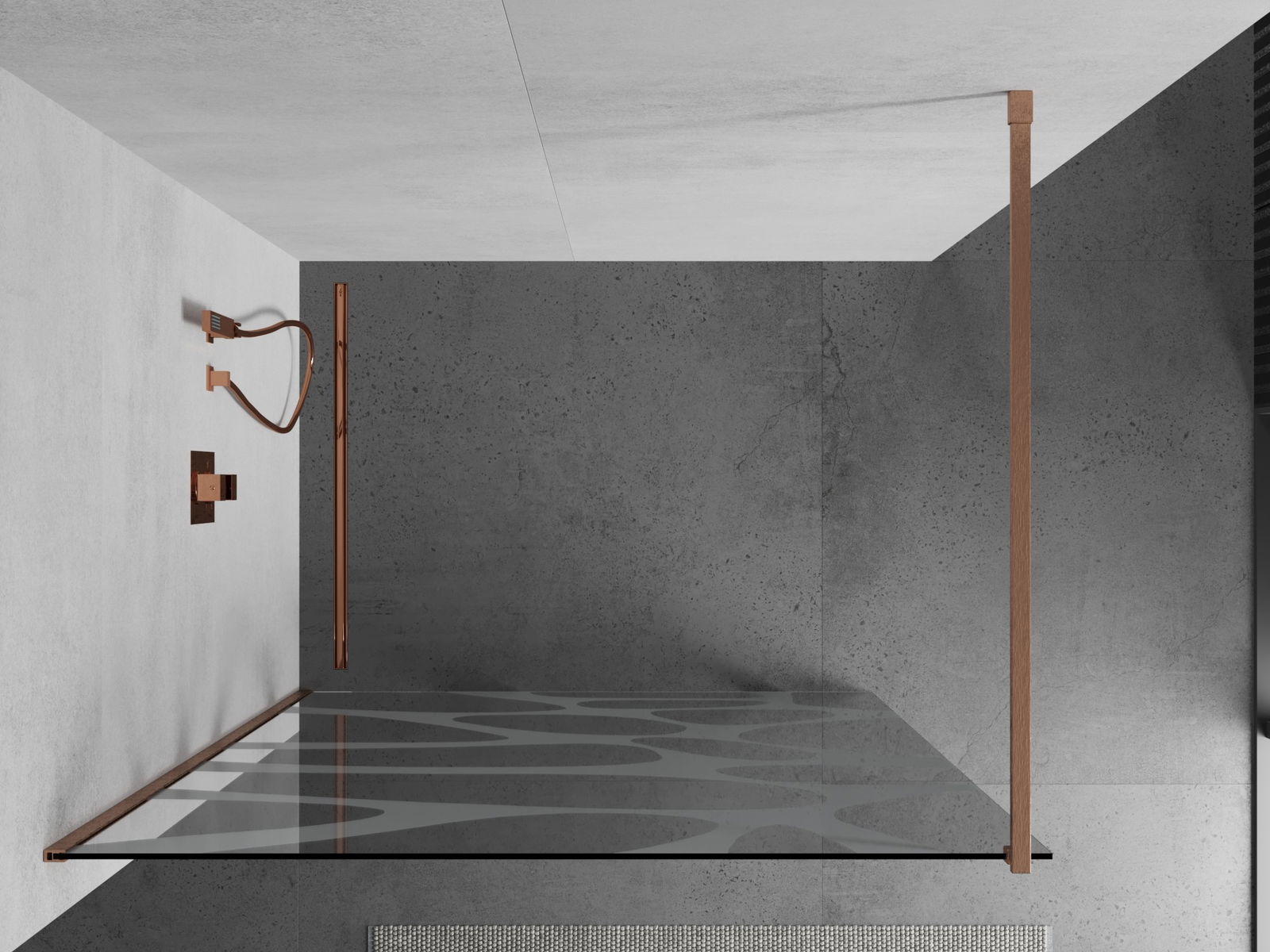 Mexen Kioto panel de ducha Walk-in 120 x 200 cm, ola blanca 8 mm, cobre cepillado - 800-120-101-65-97