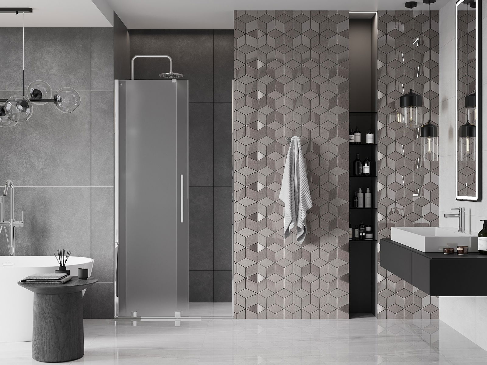El práctico y cómodo asa está hecho de acero inoxidable. La forma moderna combinada con un acabado a juego con el color de los perfiles le da a todo un aspecto moderno y elegante, resaltando la estética de cada baño.
