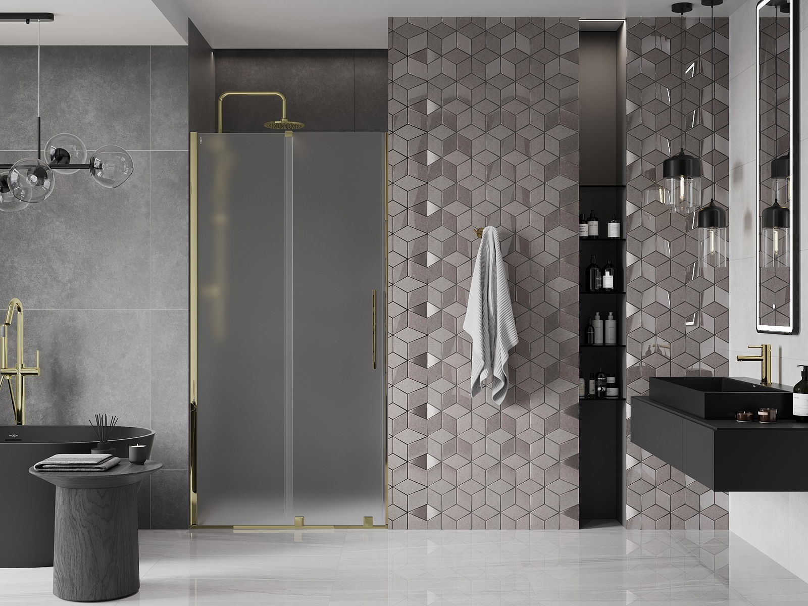Mexen Velar puerta de ducha corredera 90 cm, escarcha, dorado - 871-090-000-31-50