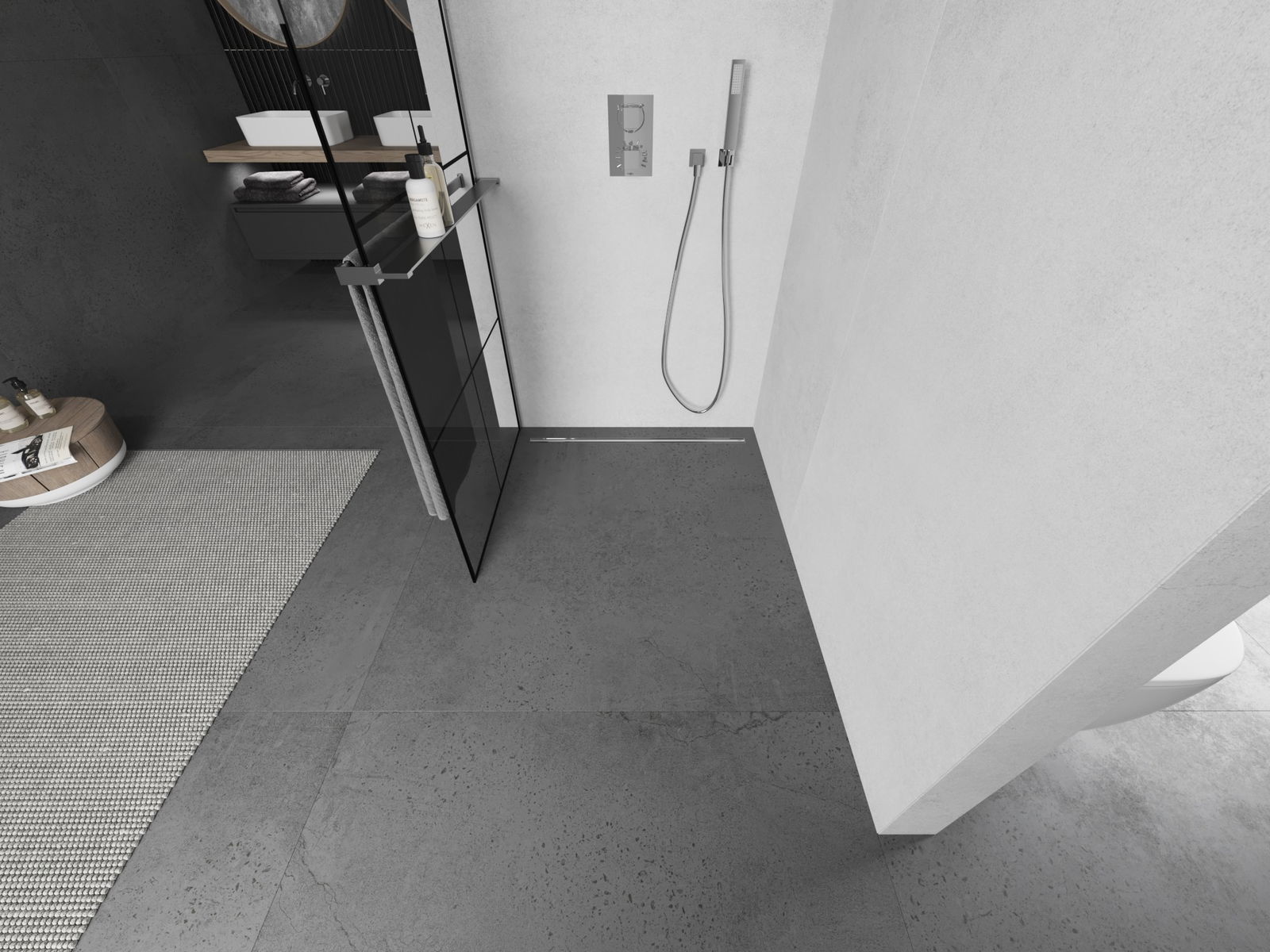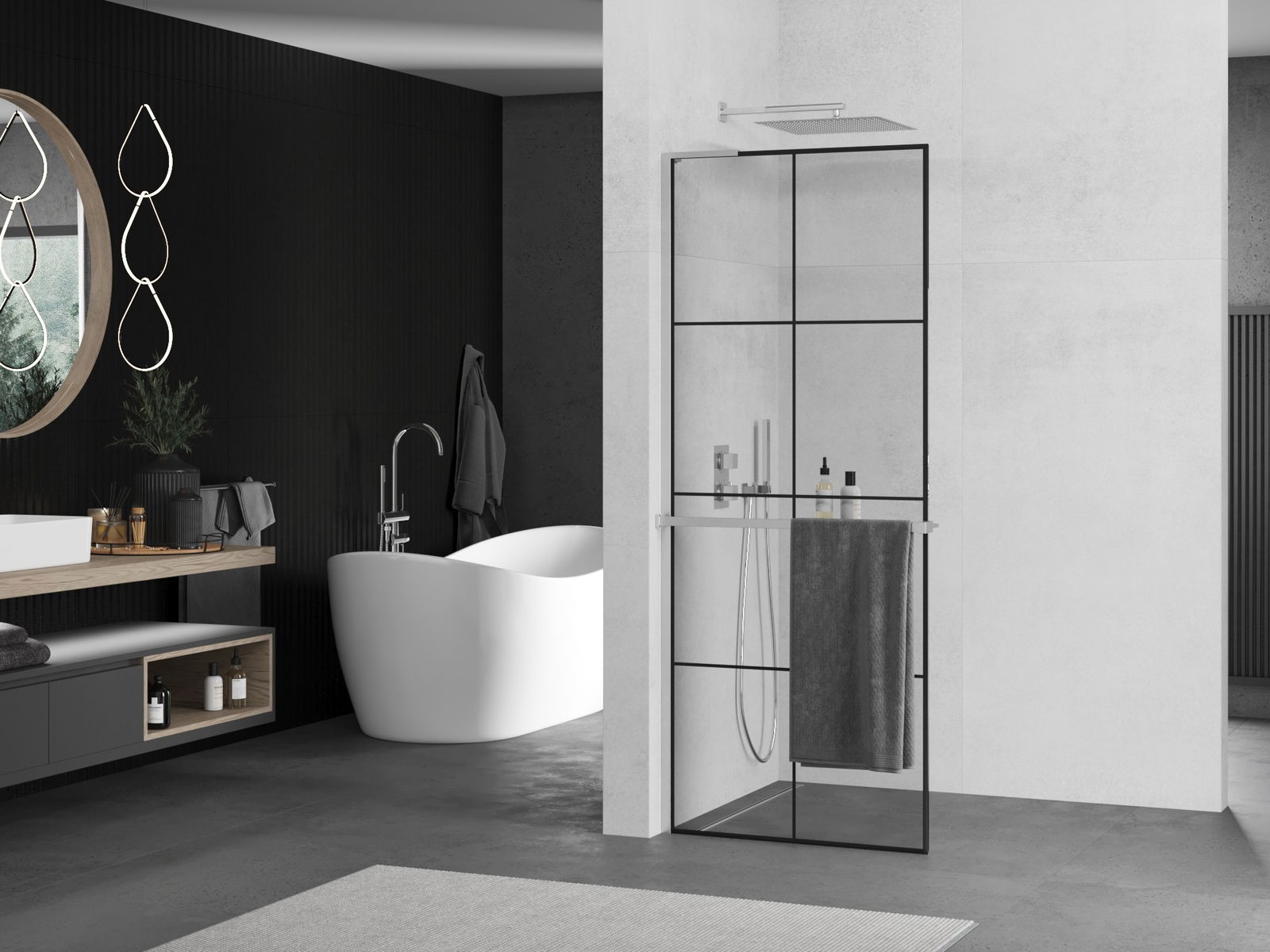 Mexen Kioto+ L panel de ducha con repisa Walk-in 80 x 200 cm, rejilla negra, cromo - 800-080-123-01-77