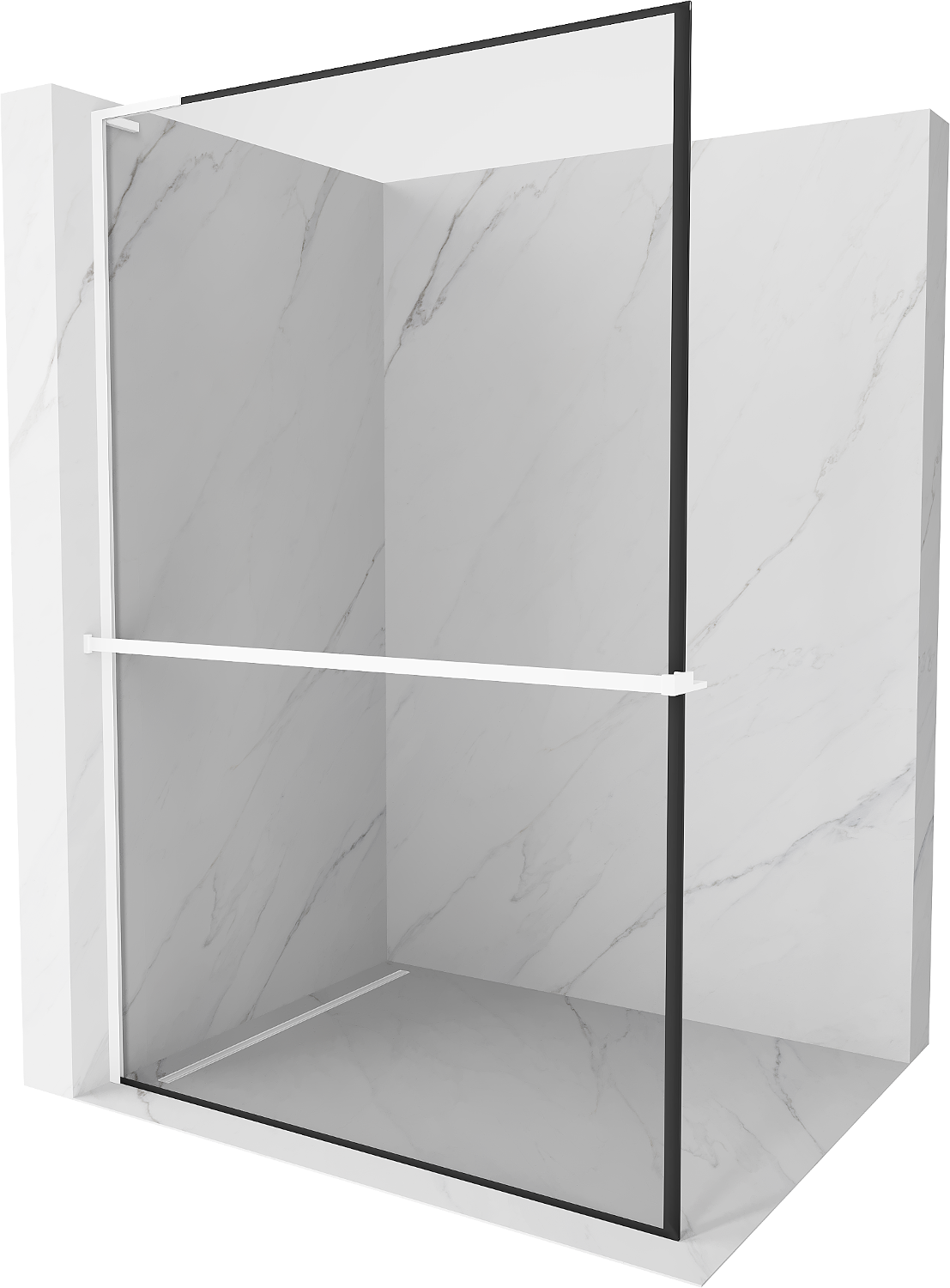 Mexen Kioto+ L pared de ducha con estante Walk-in 110 x 200 cm, marco negro, blanco - 800-110-123-20-70