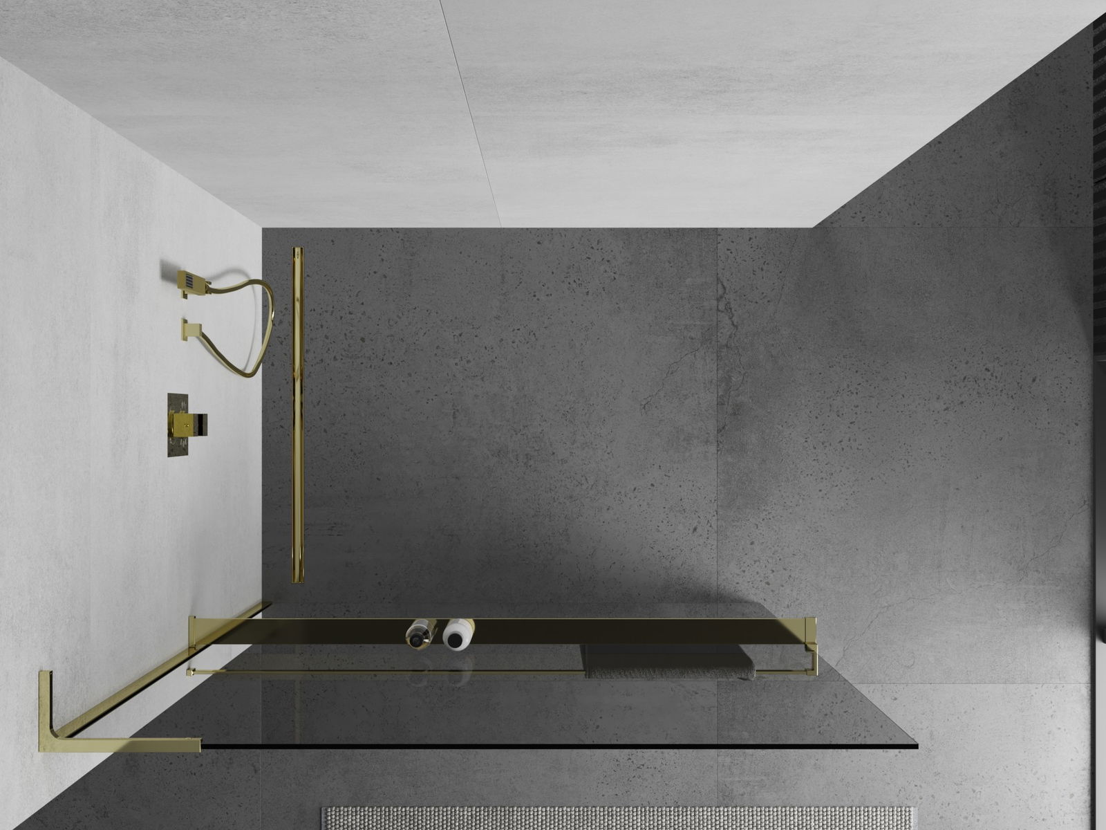 Mexen Kioto+ L panel de ducha con estante Walk-in 90 x 200 cm, transparente, dorado - 800-090-123-50-00