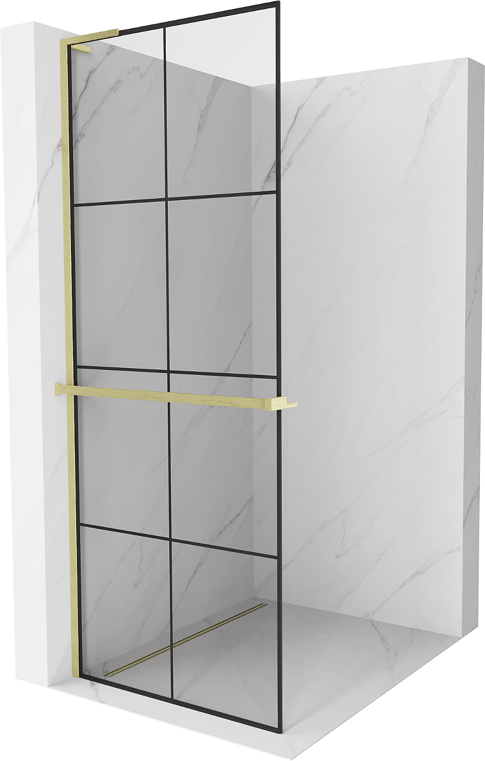 Mexen Kioto+ L panel de ducha con estante Walk-in 70 x 200 cm, cuadrícula negra, dorado cepillado - 800-070-123-55-77