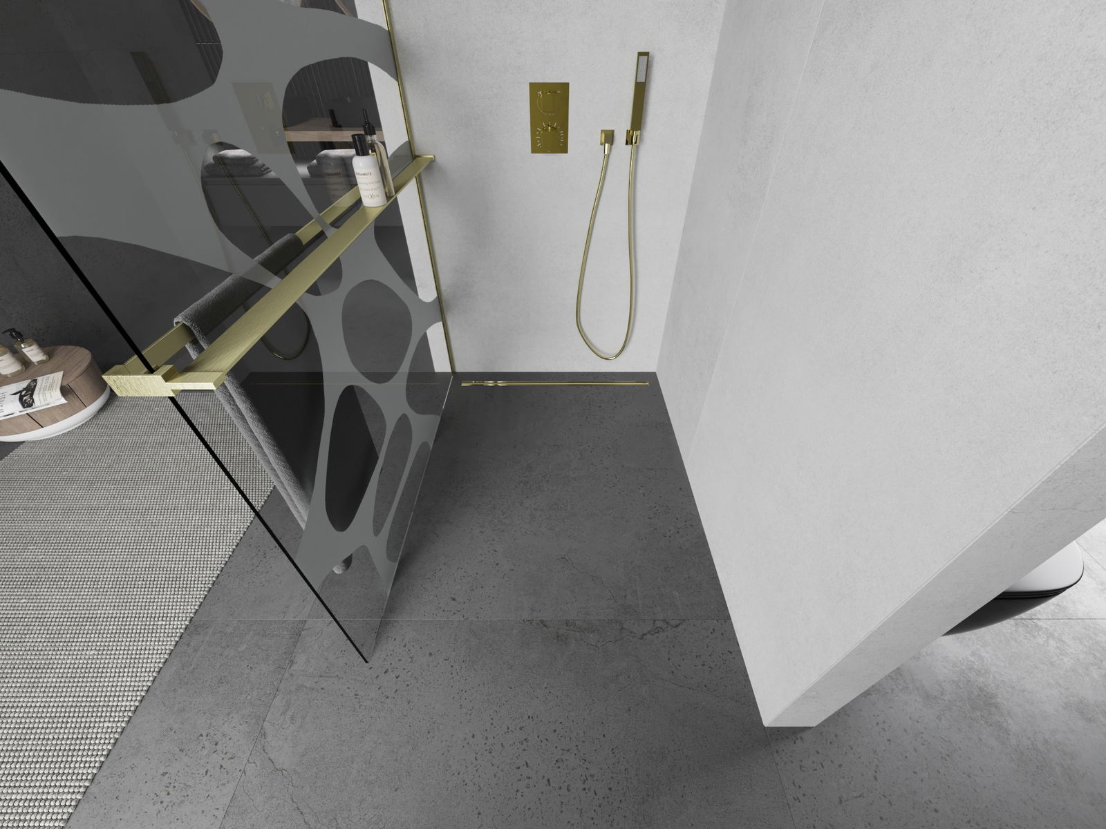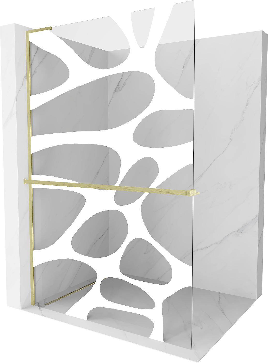 Mexen Kioto+ L panel de ducha con estante Walk-in 120 x 200 cm, onda blanca, dorado cepillado - 800-120-123-55-97