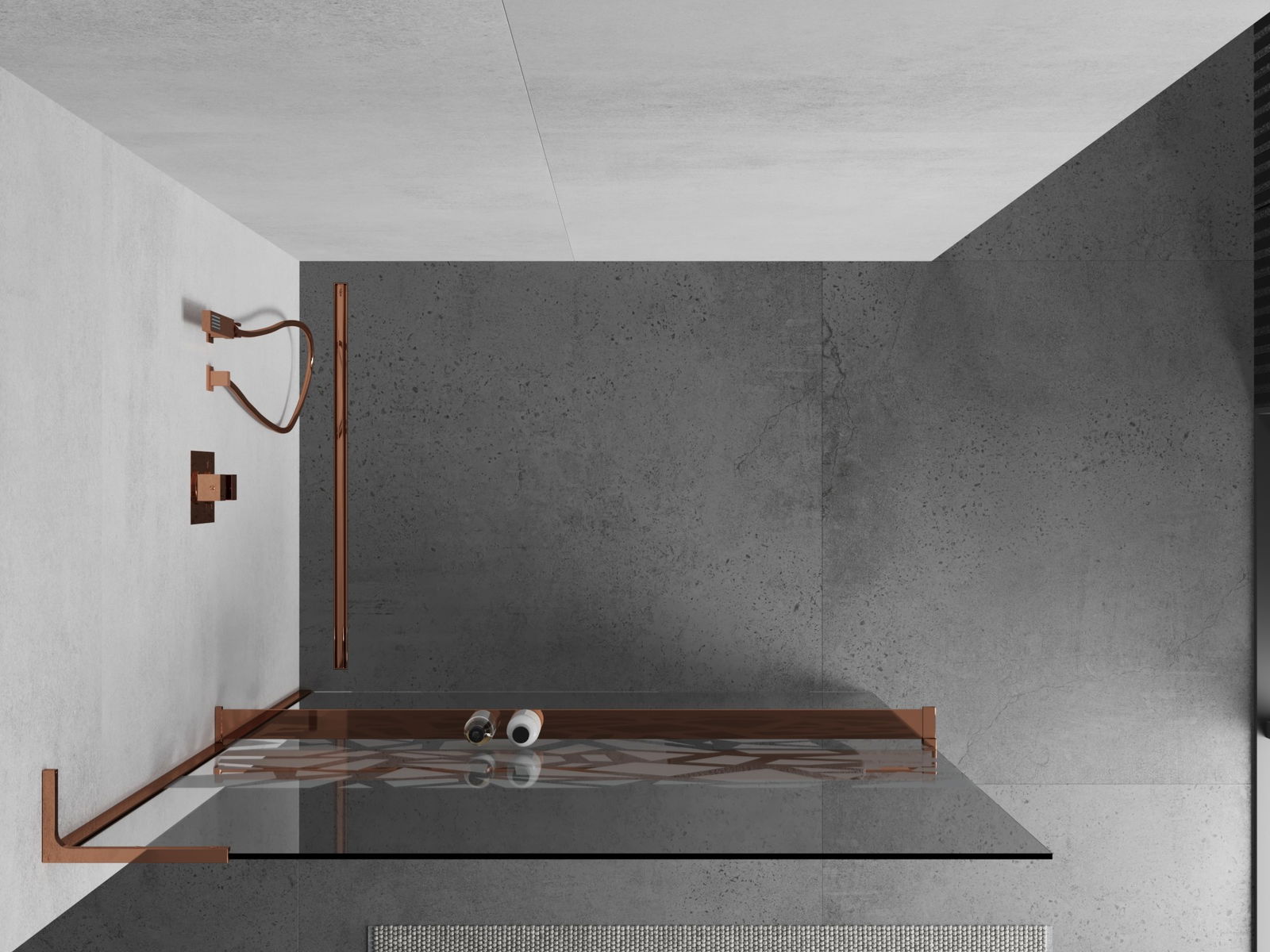 Mexen Kioto+ L panel de ducha con estante Walk-in 70 x 200 cm, patrón blanco, oro rosa - 800-070-123-60-85