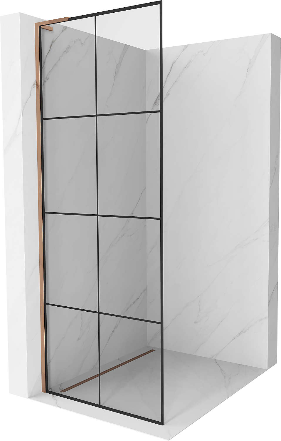Mexen Kioto L panel de ducha Walk-in 90 x 200 cm, rejilla negra, oro rosa - 800-090-103-60-77