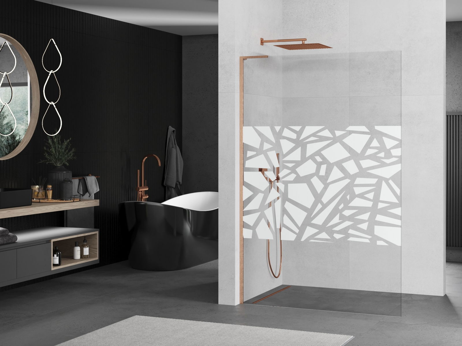 Mexen Kioto L panel de ducha Walk-in 120 x 200 cm, patrón blanco, cobre cepillado - 800-120-103-65-85