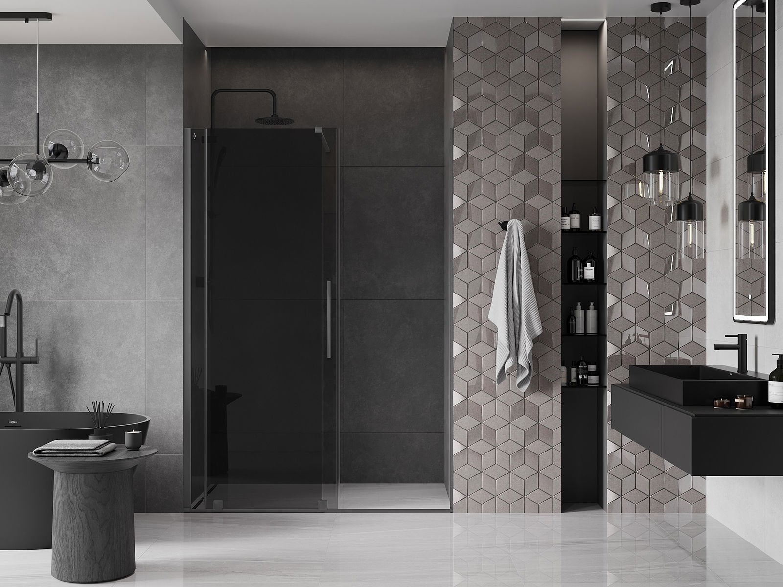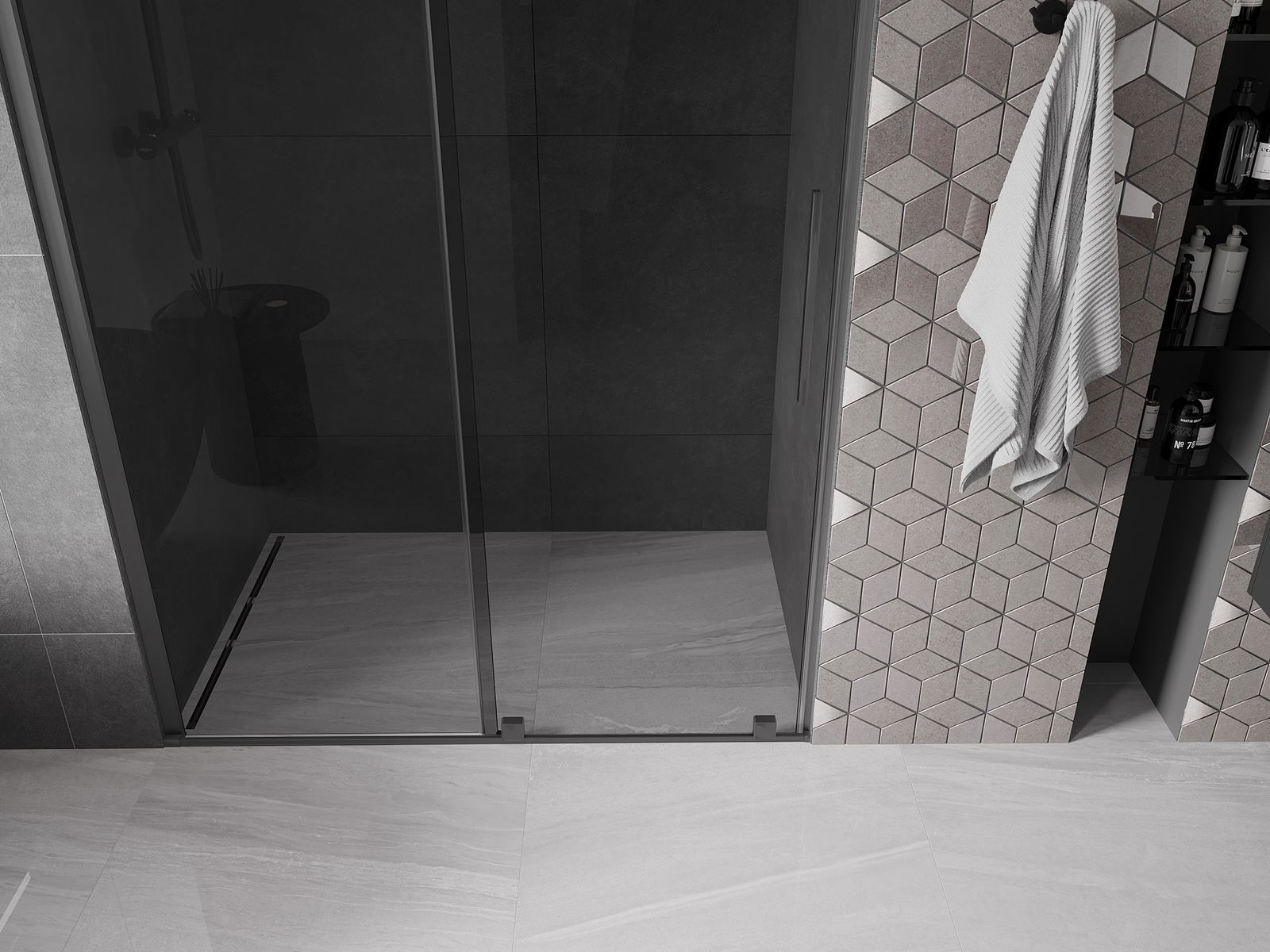 El práctico y cómodo asa está hecho de acero inoxidable. La forma moderna combinada con un acabado a juego con el color de los perfiles le da a todo un aspecto moderno y elegante, resaltando la estética de cada baño.