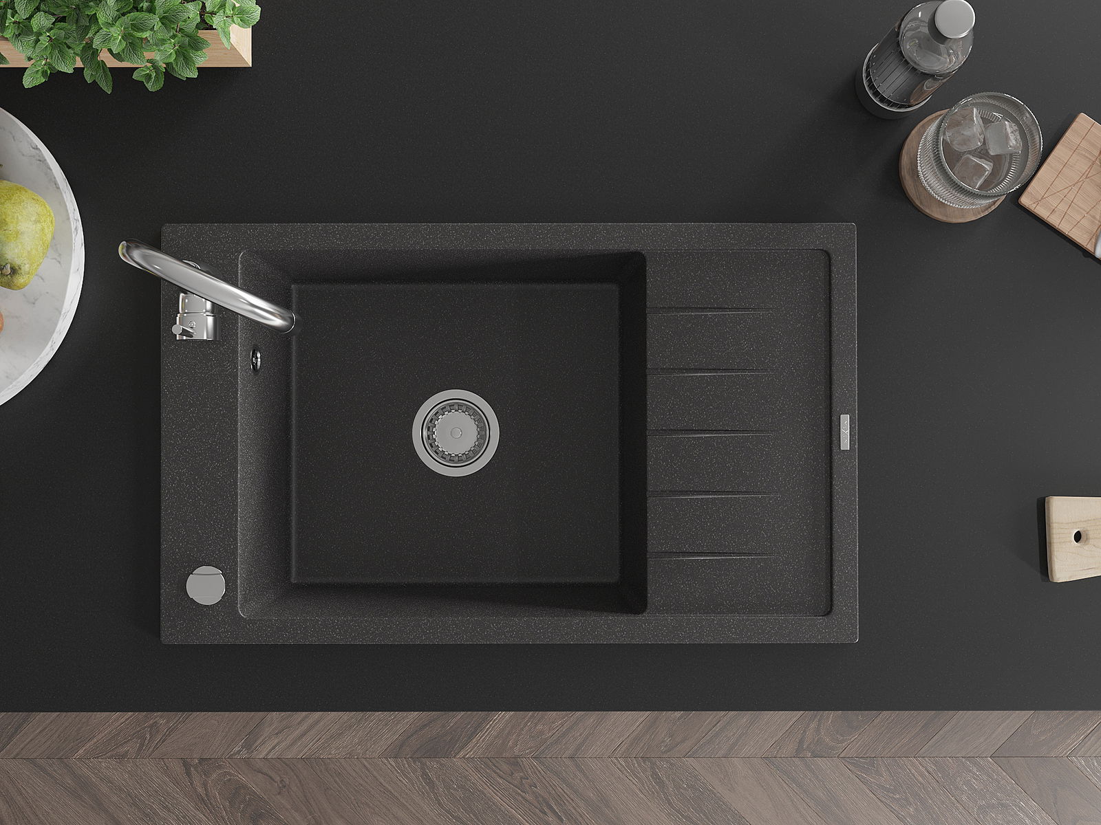 El fregadero está hecho de granito de alta calidad. Es un complemento elegante y, sobre todo, práctico para cualquier cocina, independientemente de su estilo. La alta calidad y durabilidad del granito aseguran un uso prolongado durante años.