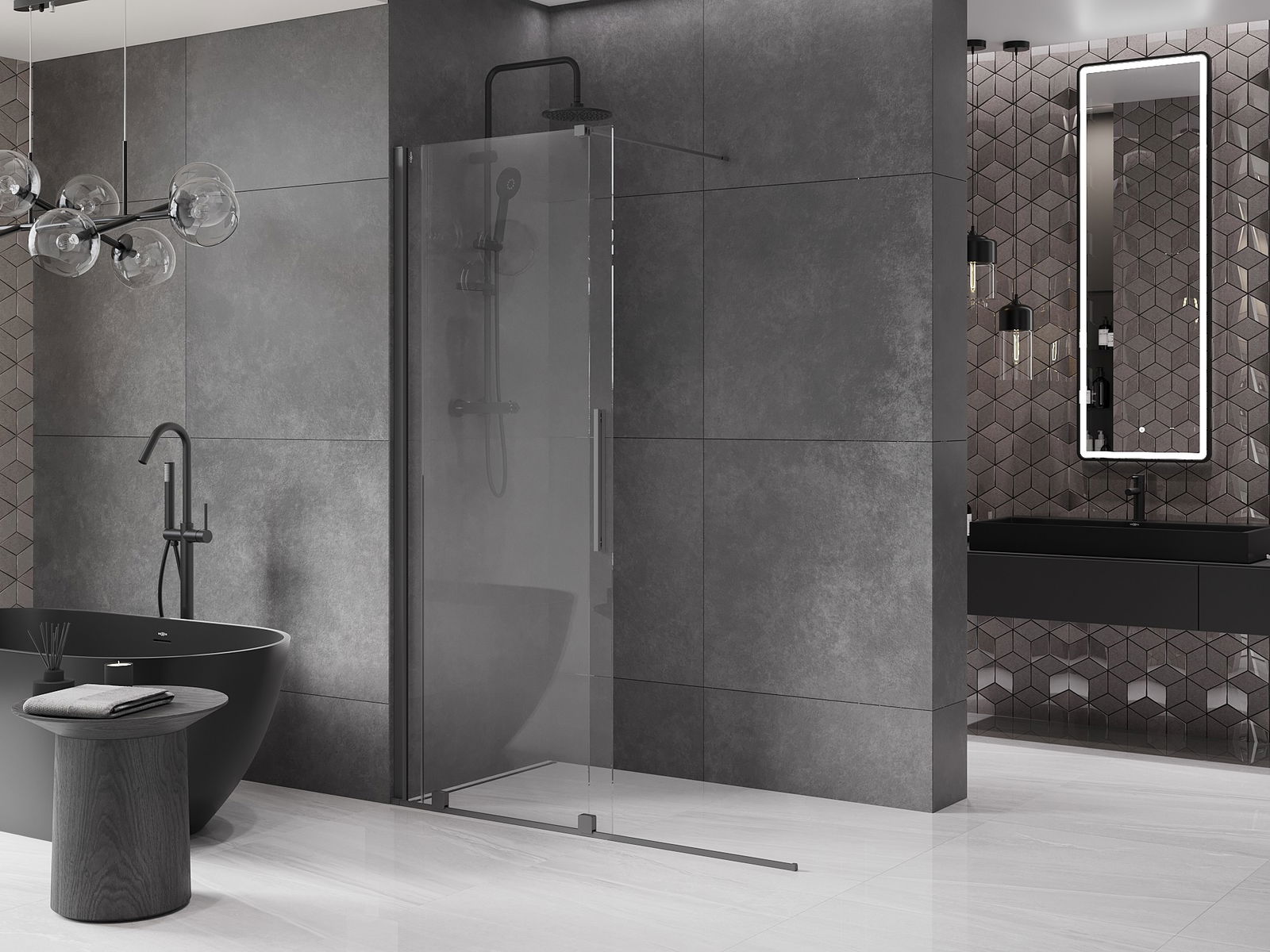 El práctico y cómodo asa está hecho de acero inoxidable. La forma moderna combinada con un acabado a juego con el color de los perfiles le da a todo un aspecto moderno y elegante, resaltando la estética de cada baño.