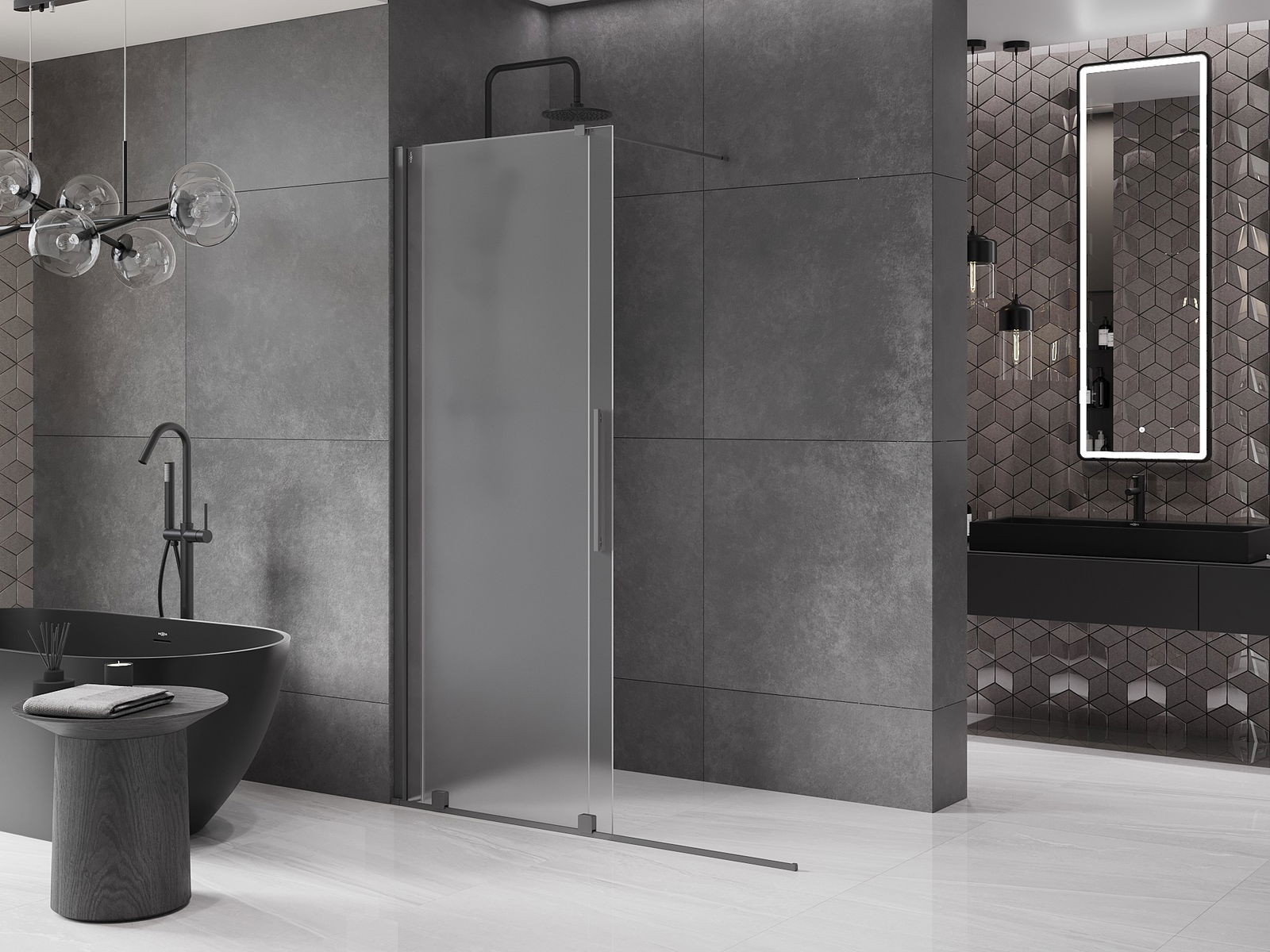 Mexen Velar mampara de ducha deslizante Walk-in 140 x 200 cm, escarcha 8 mm, metal de arma - 871-140-000-33-95