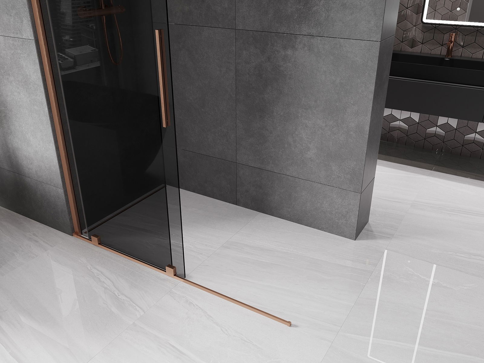 Mexen Velar pared de ducha deslizante Walk-in 130 x 200 cm, grafito 8 mm, cobre cepillado - 871-130-000-43-65