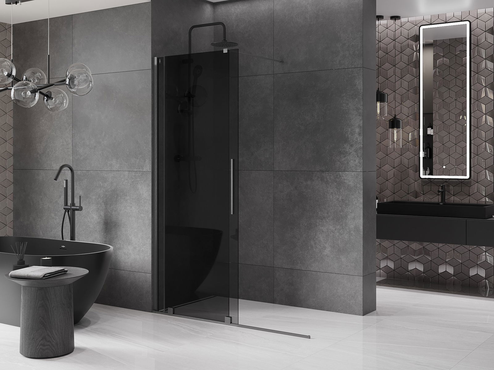 Mexen Velar mampara de ducha deslizante Walk-in 130 x 200 cm, grafito 8 mm, gris arma cepillado - 871-130-000-43-66