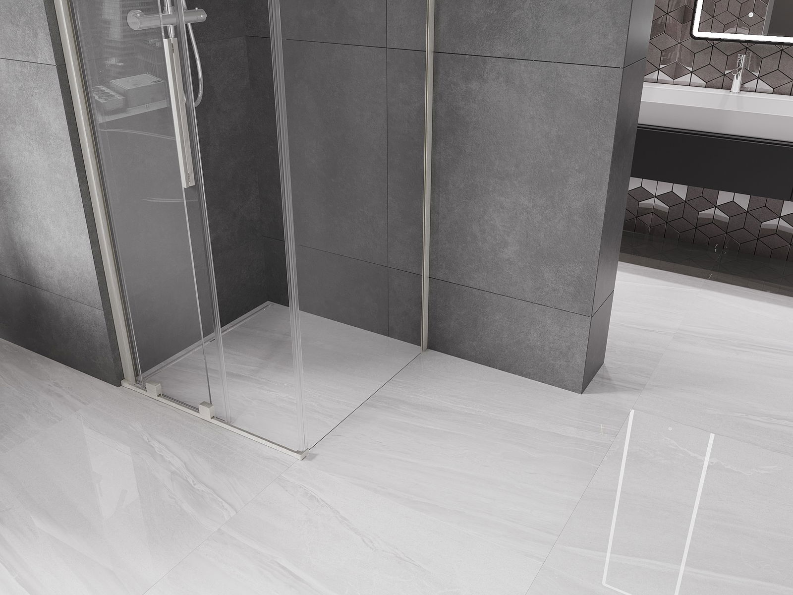 El práctico y cómodo asa está hecho de acero inoxidable. La forma moderna combinada con un acabado a juego con el color de los perfiles le da a todo un aspecto moderno y elegante, resaltando la estética de cada baño.
