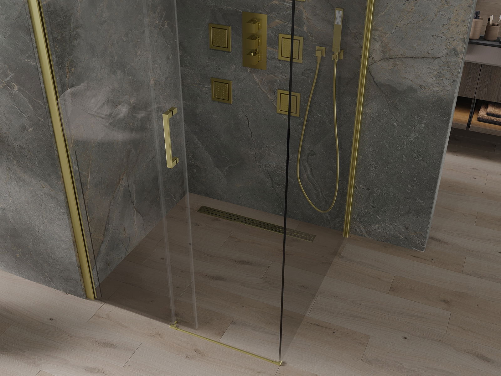 Mexen Omega cabina de ducha corredera 100 x 100 cm, transparente, dorada - 825-100-100-50-00