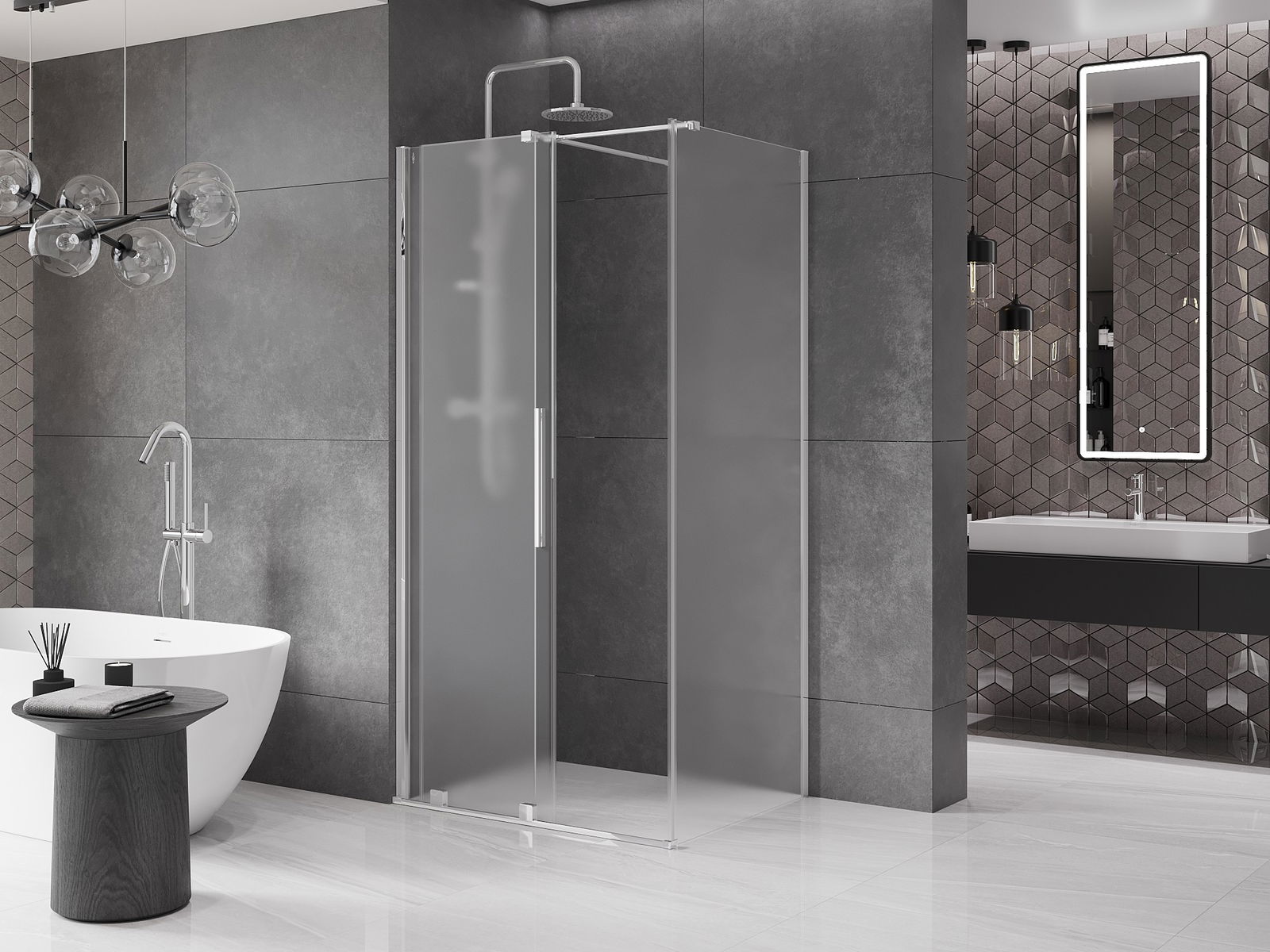Mexen Velar cabina de ducha corredera 90 x 70 cm, escarcha, cromo - 871-090-070-31-01