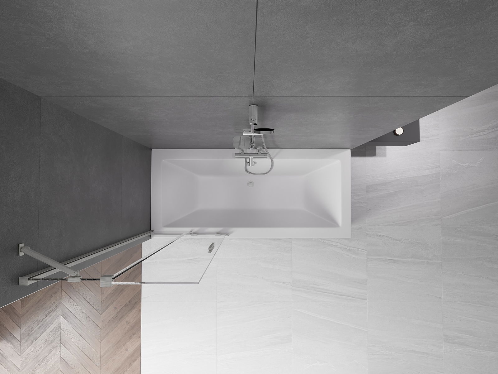 Protección efectiva contra el derrame de agua durante el baño. La mampara tiene juntas que se ajustan perfectamente a la superficie del vidrio y al borde de la bañera. Solución funcional que garantiza seguridad y facilidad de limpieza.