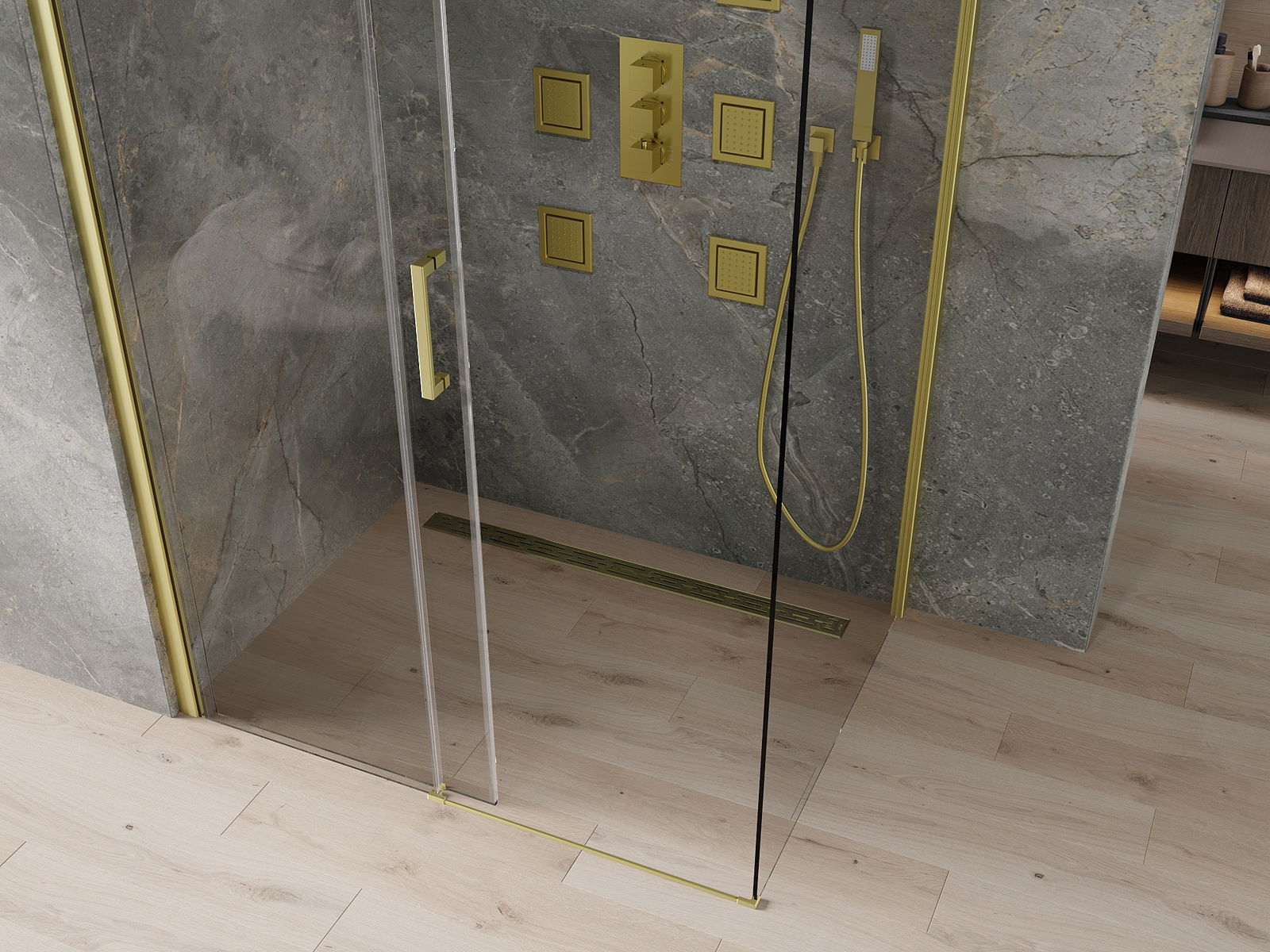 Mexen Omega cabina de ducha corrediza 140 x 90 cm, transparente, dorada - 825-140-090-50-00