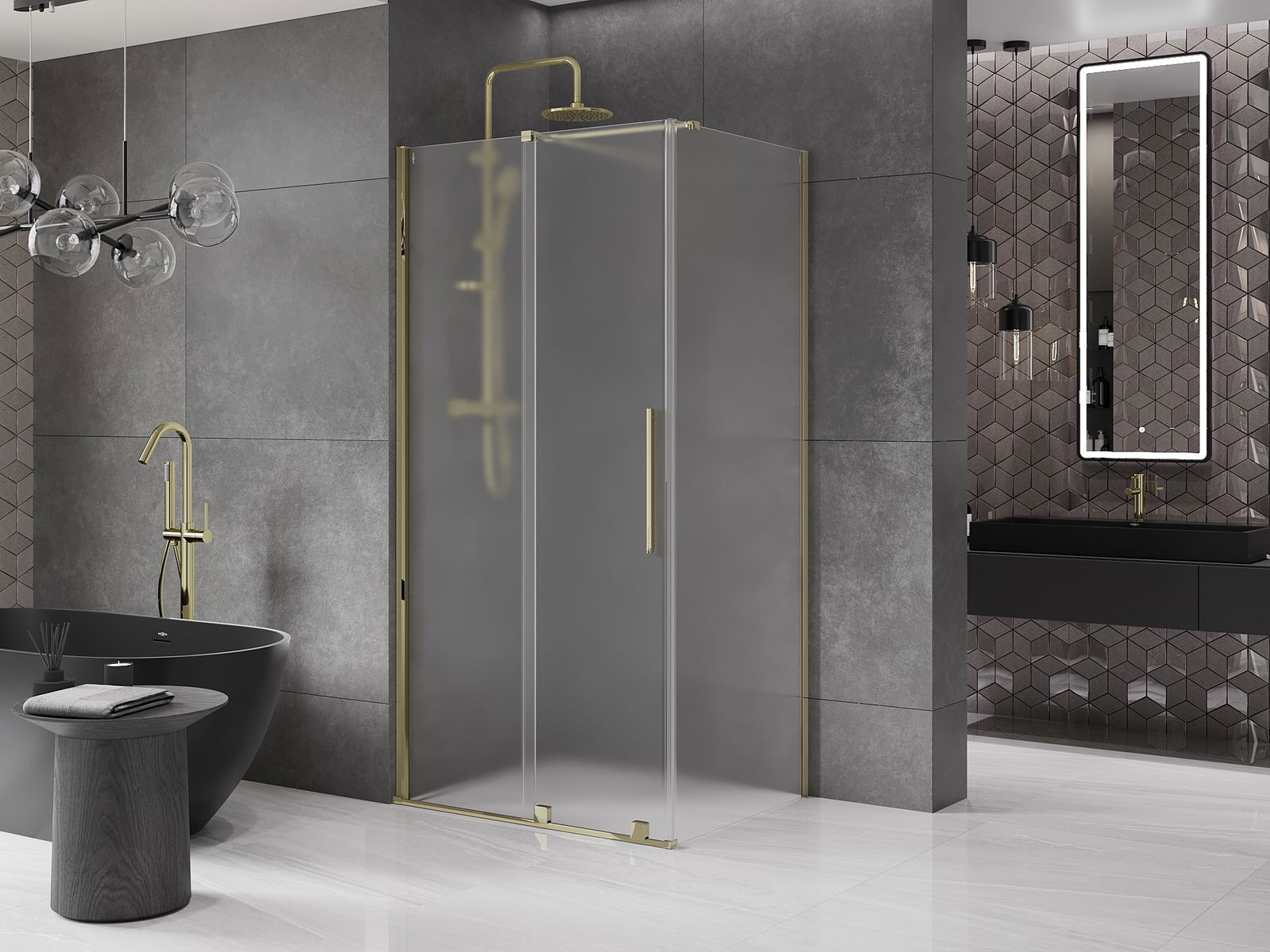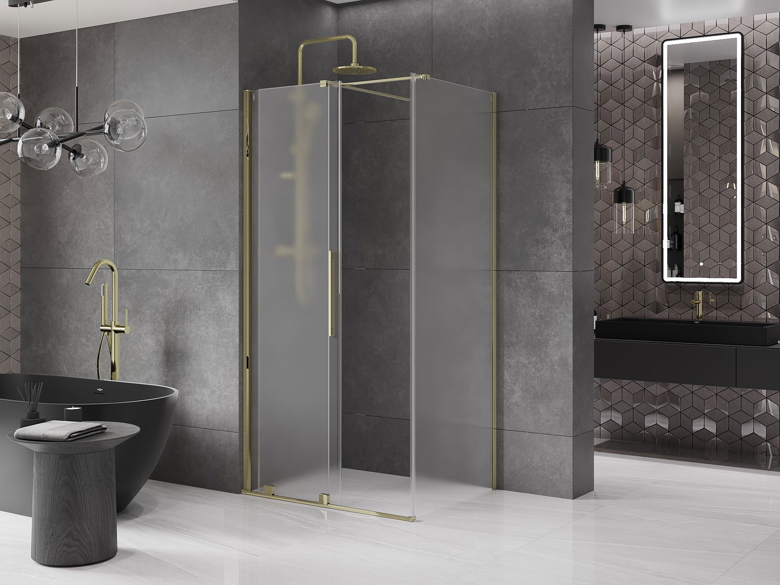 Mexen Velar cabina de ducha corredera 120 x 90 cm, escarcha, dorada - 871-120-090-31-50