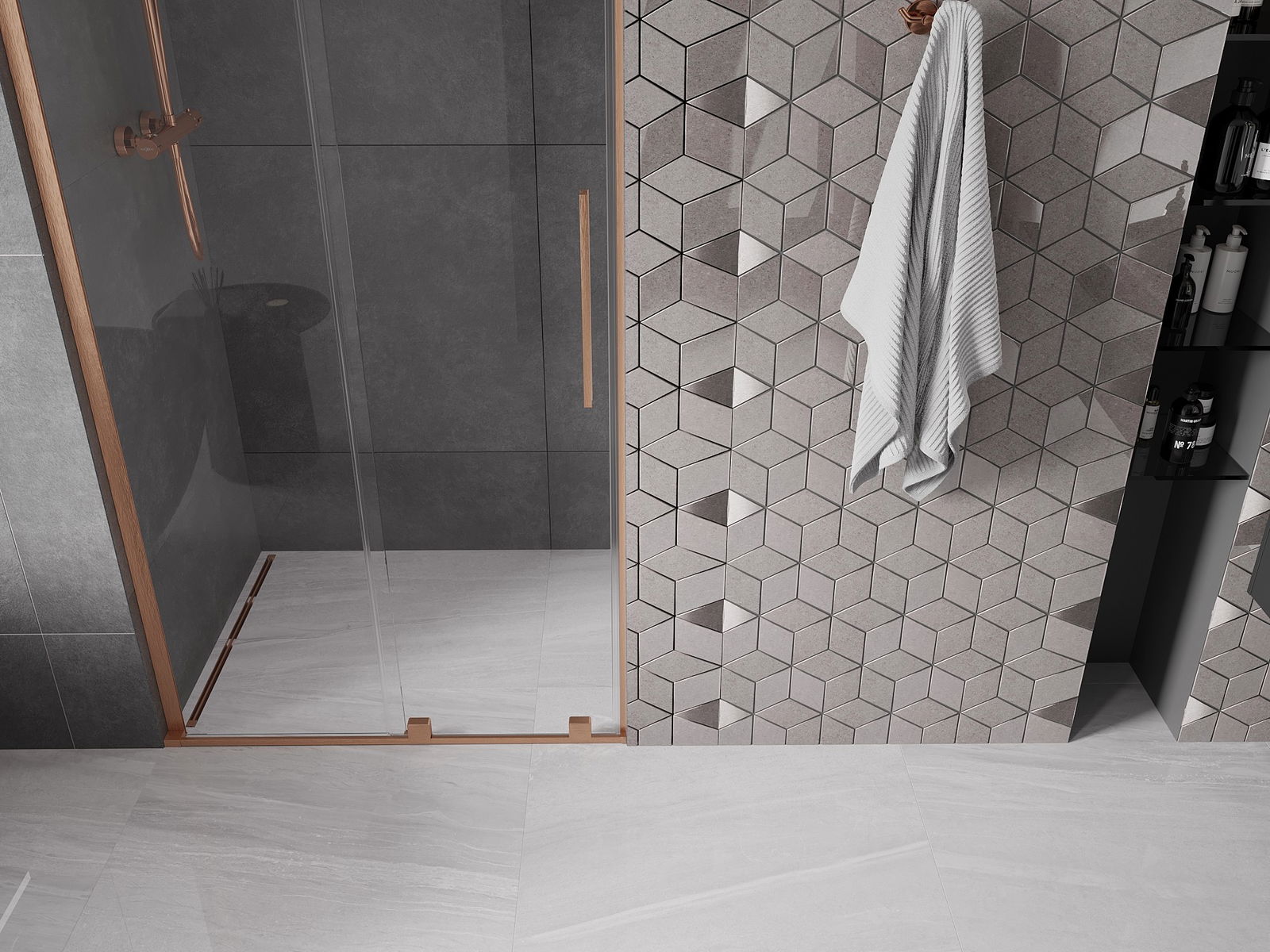 Mexen Velar L puertas de ducha correderas 100 cm, transparente, cobre cepillado - 871-100-003-01-65