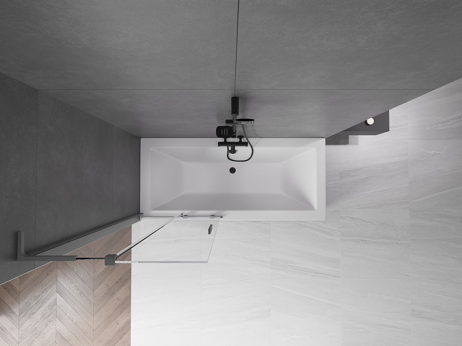 Protección efectiva contra el derrame de agua durante el baño. La mampara tiene juntas que se ajustan perfectamente a la superficie del vidrio y al borde de la bañera. Solución funcional que garantiza seguridad y facilidad de limpieza.