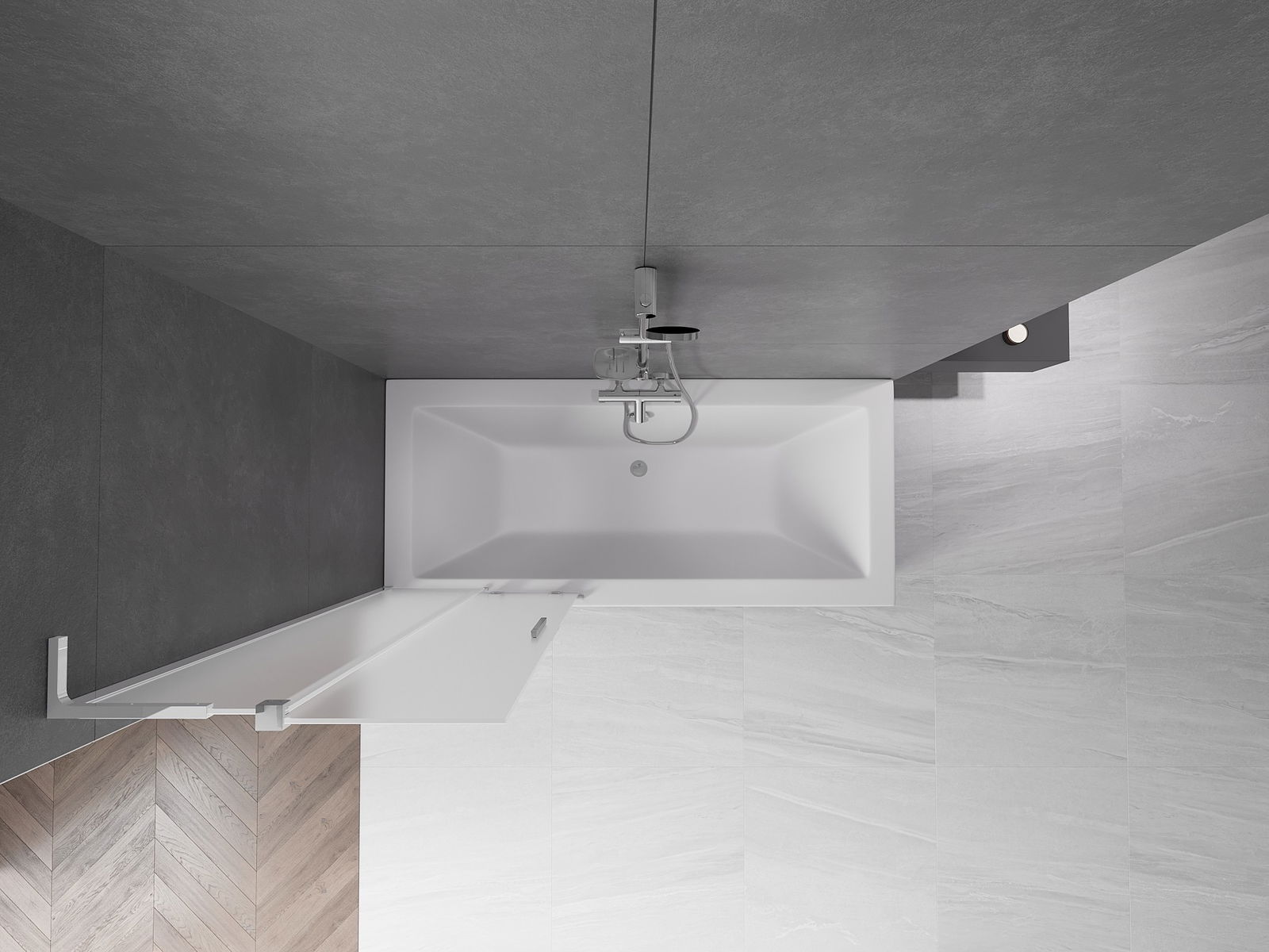 Protección efectiva contra el derrame de agua durante el baño. La mampara tiene juntas que se ajustan perfectamente a la superficie del vidrio y al borde de la bañera. Solución funcional que garantiza seguridad y facilidad de limpieza.