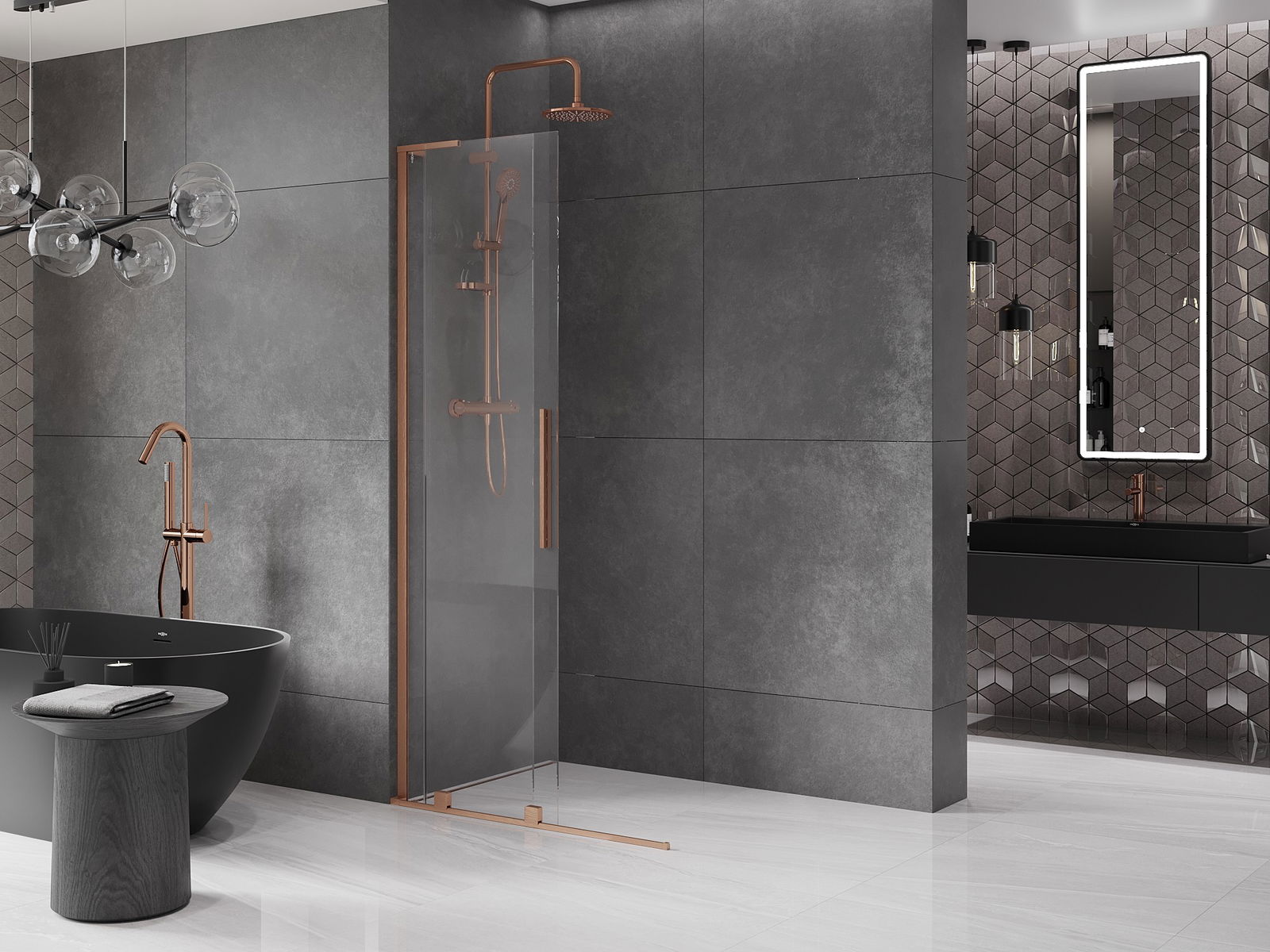 Mexen Velar L mampara de ducha corredera Walk-in 100 x 200 cm, transparente 8 mm, cobre cepillado - 871-100-003-03-65