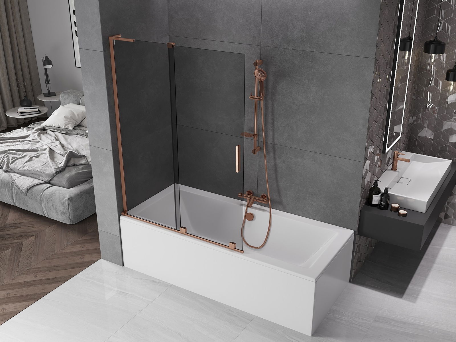 Mexen Velar L pantalla de ducha para bañera 2 alas correderas 120 x 150 cm, grafito, oro rosa - 896-120-003-41-60