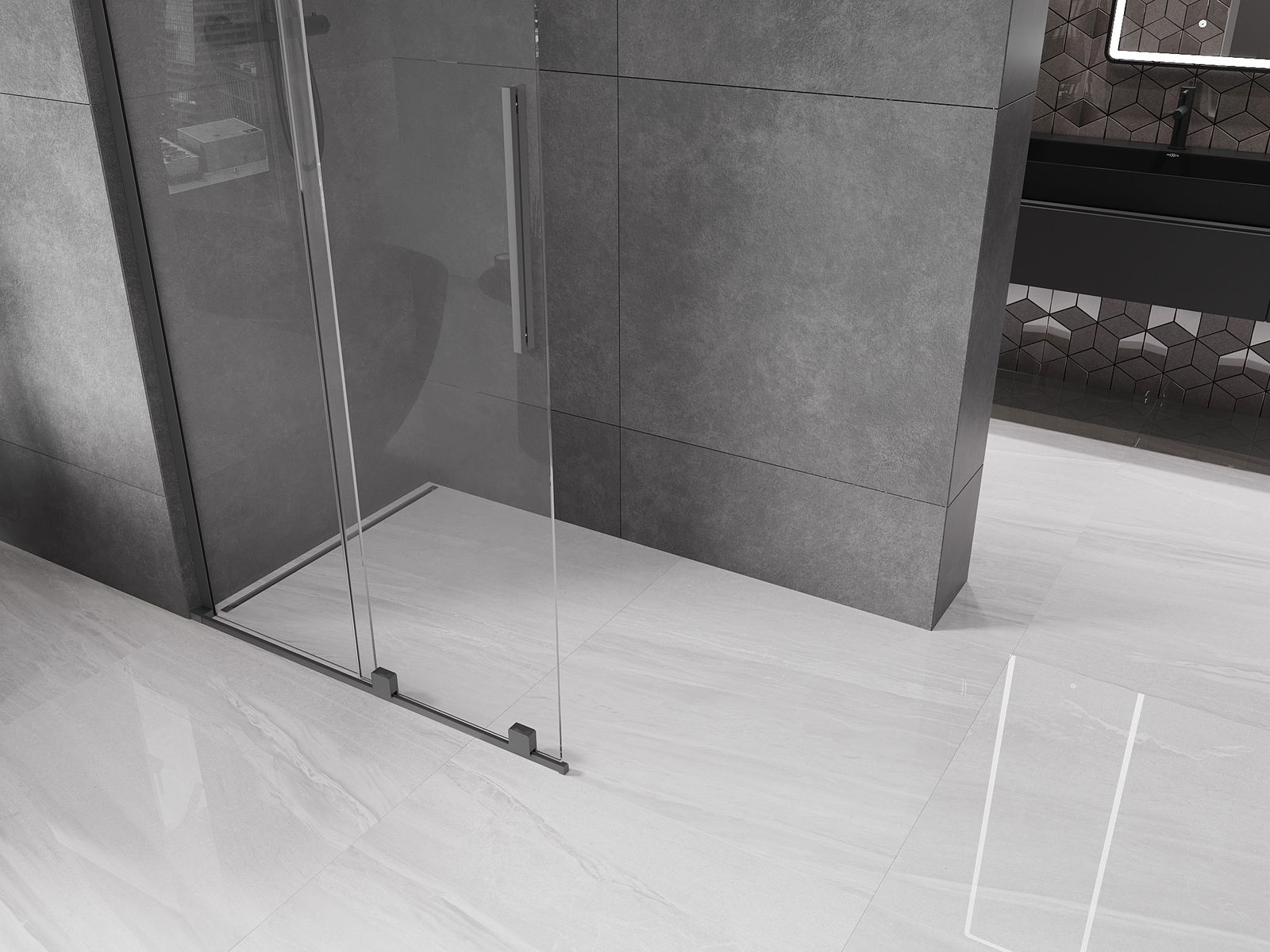 Mexen Velar L panel de ducha deslizante Walk-in 100 x 200 cm, transparente 8 mm, metal de pistola - 871-100-003-03-95
