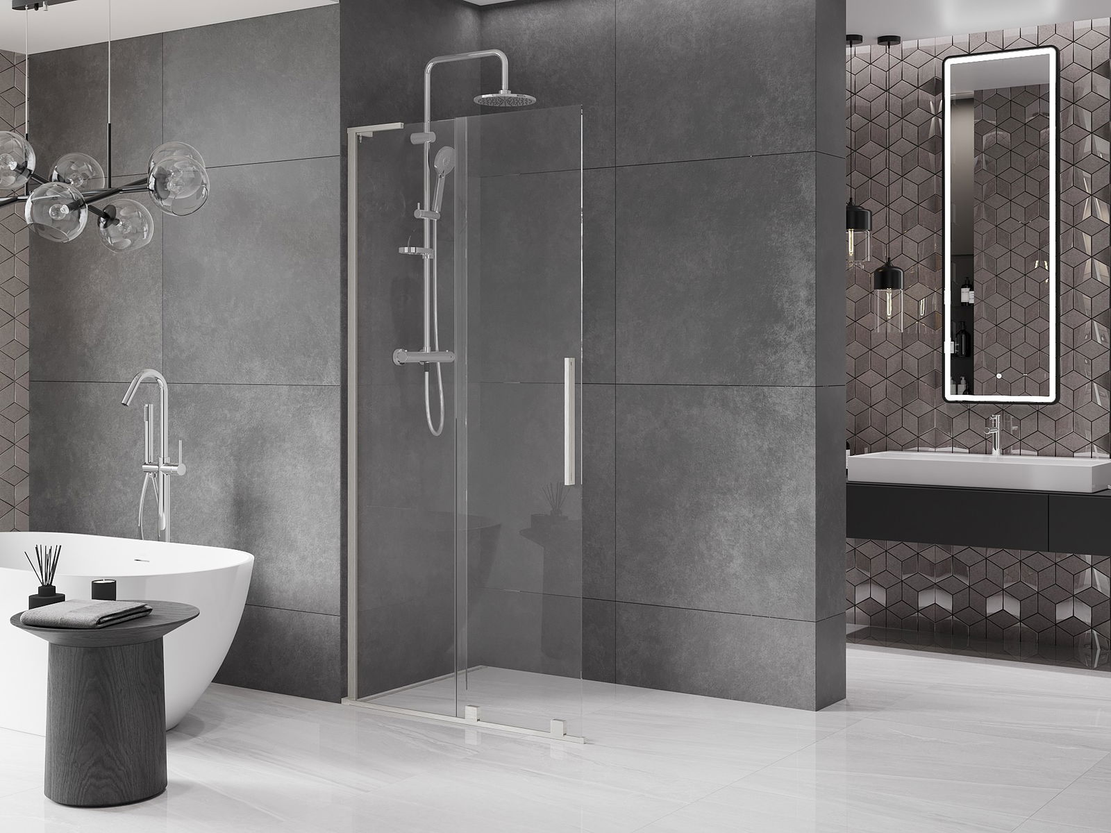 Mexen Velar L Mampara de ducha deslizante Walk-in 100 x 200 cm, transparente 8 mm, níquel cepillado - 871-100-003-03-97