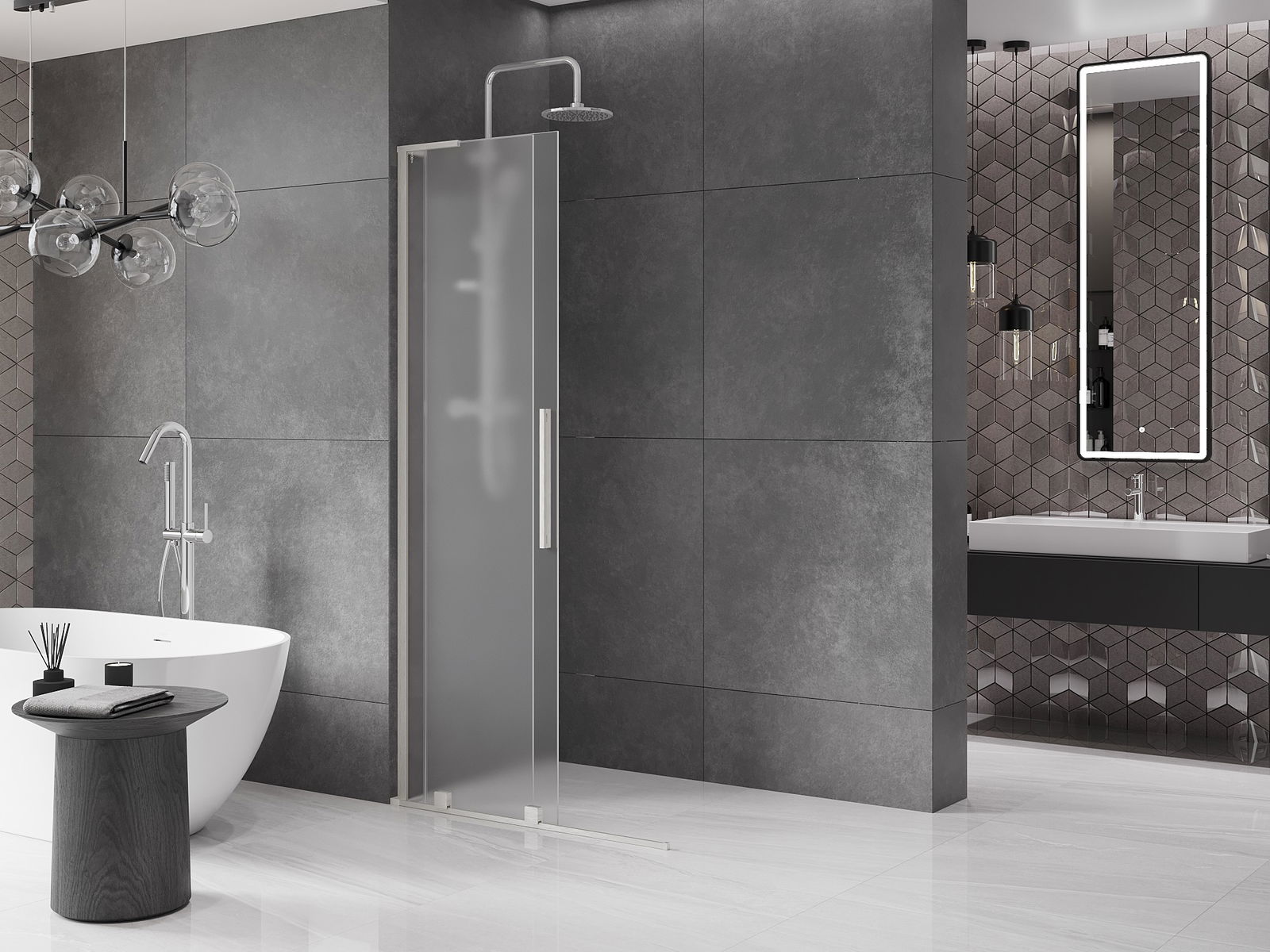 Mexen Velar L panel de ducha deslizante Walk-in 120 x 200 cm, escarcha 8 mm, níquel cepillado - 871-120-003-33-97