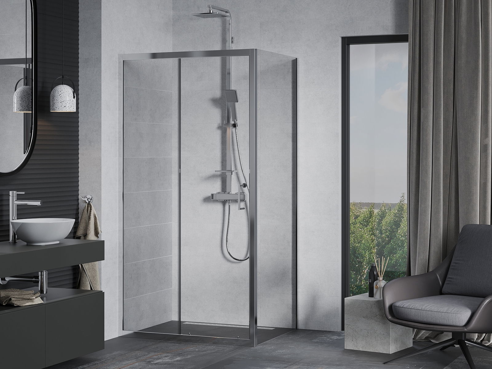 Un asa práctico y cómodo hecho de metal duradero y resistente. La forma moderna combinada con un acabado que se adapta al color de los perfiles le da a todo un aspecto moderno y estilizado, destacando la estética de cada baño.
