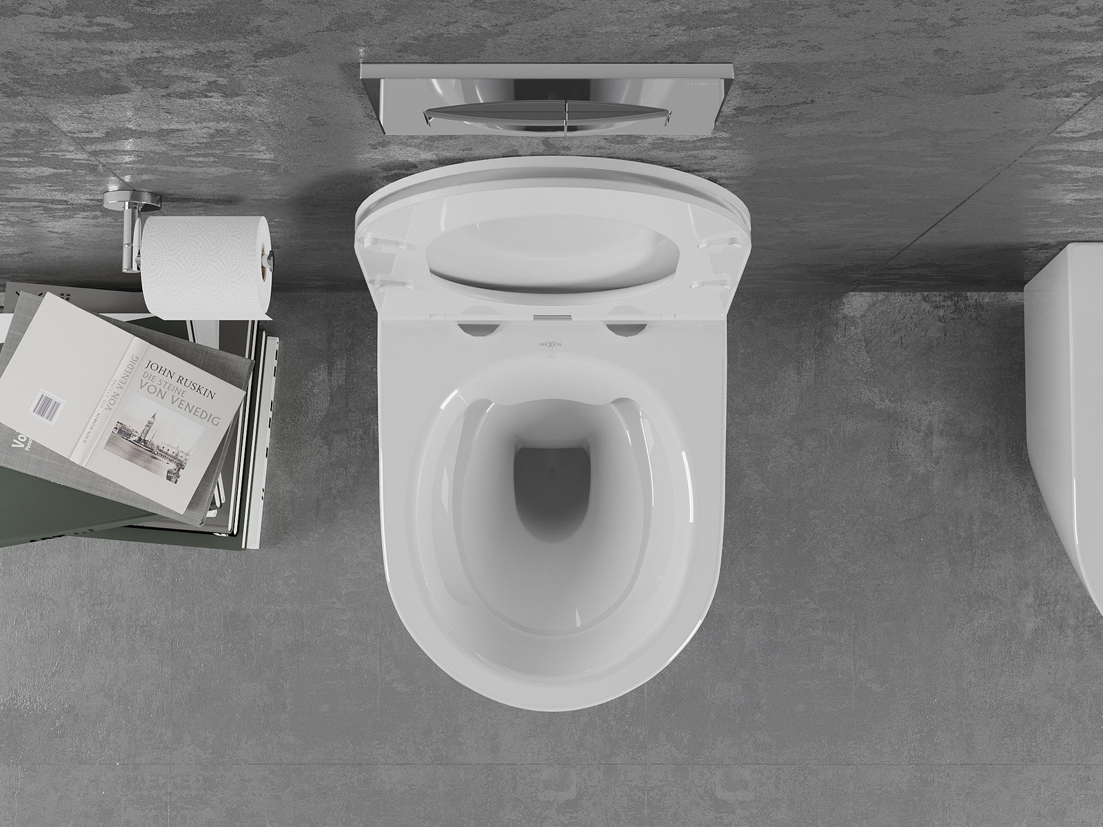 Tabla delgada con una forma excepcionalmente ergonómica y un aspecto extremadamente esbelto. El diseño se adapta perfectamente al interior moderno del baño, dando una sensación de ligereza. Una excelente opción para arreglos minimalistas.