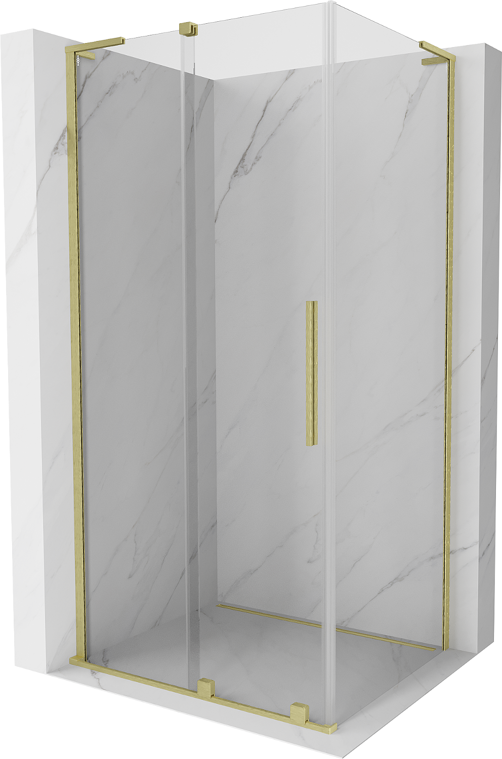 Mexen Velar L cabina de ducha corredera 90 x 80 cm, transparente, oro cepillado - 871-090-080-03-55