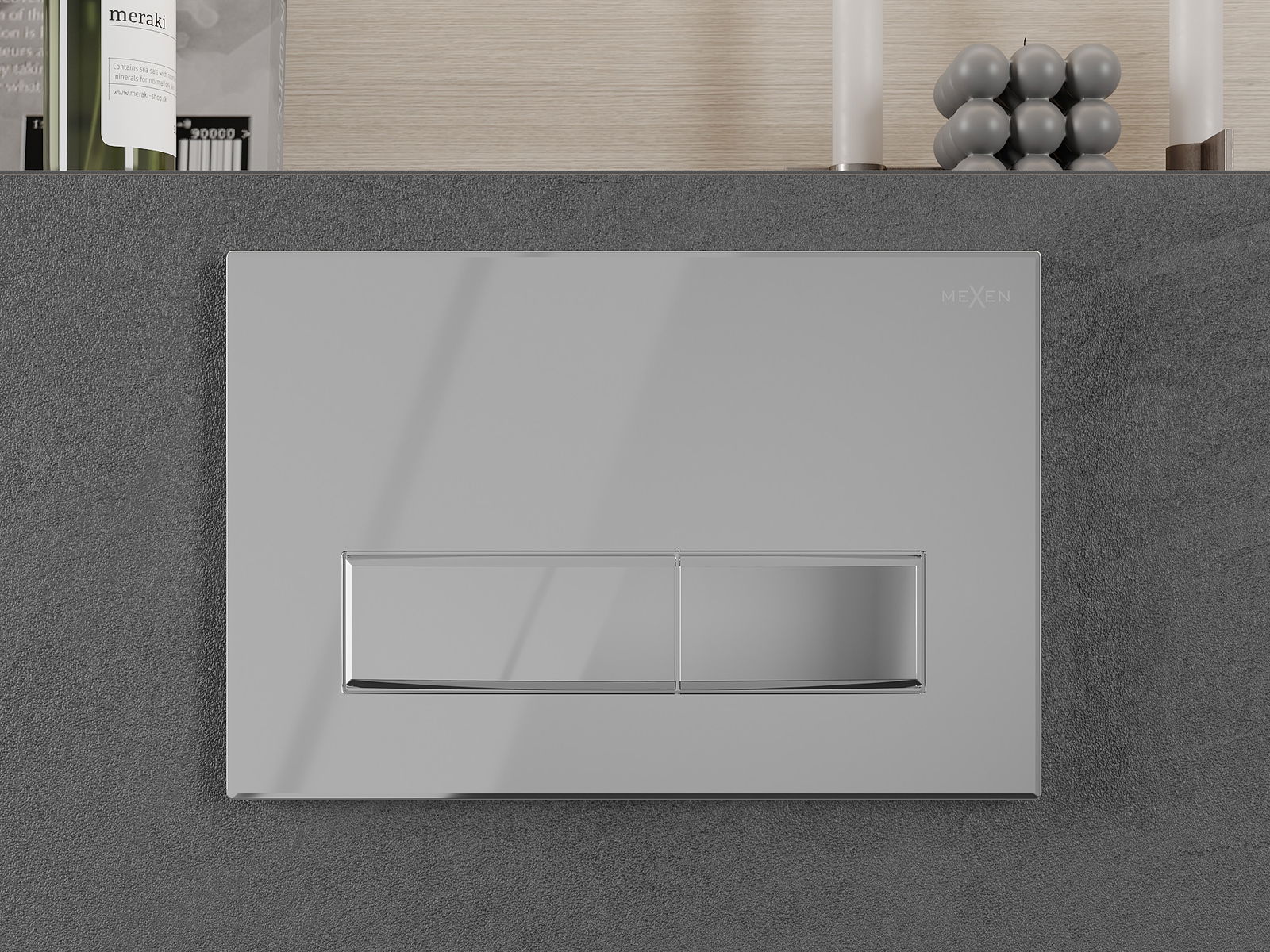 El botón está diseñado para bastidores empotrados, donde el lugar de montaje se encuentra en la parte frontal de la construcción. Esta ubicación garantiza un acceso fácil y un manejo cómodo de la descarga.