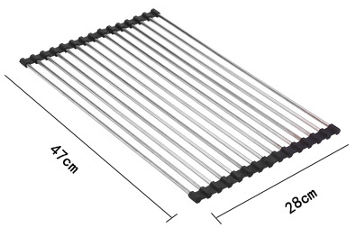 El escurridor es excepcionalmente fácil de almacenar: si no es necesario, simplemente enróllalo. De esta manera, cuando está plegado ocupa poco espacio y cabe incluso en un armario o cajón más pequeño. Una solución ideal para cocinas pequeñas.