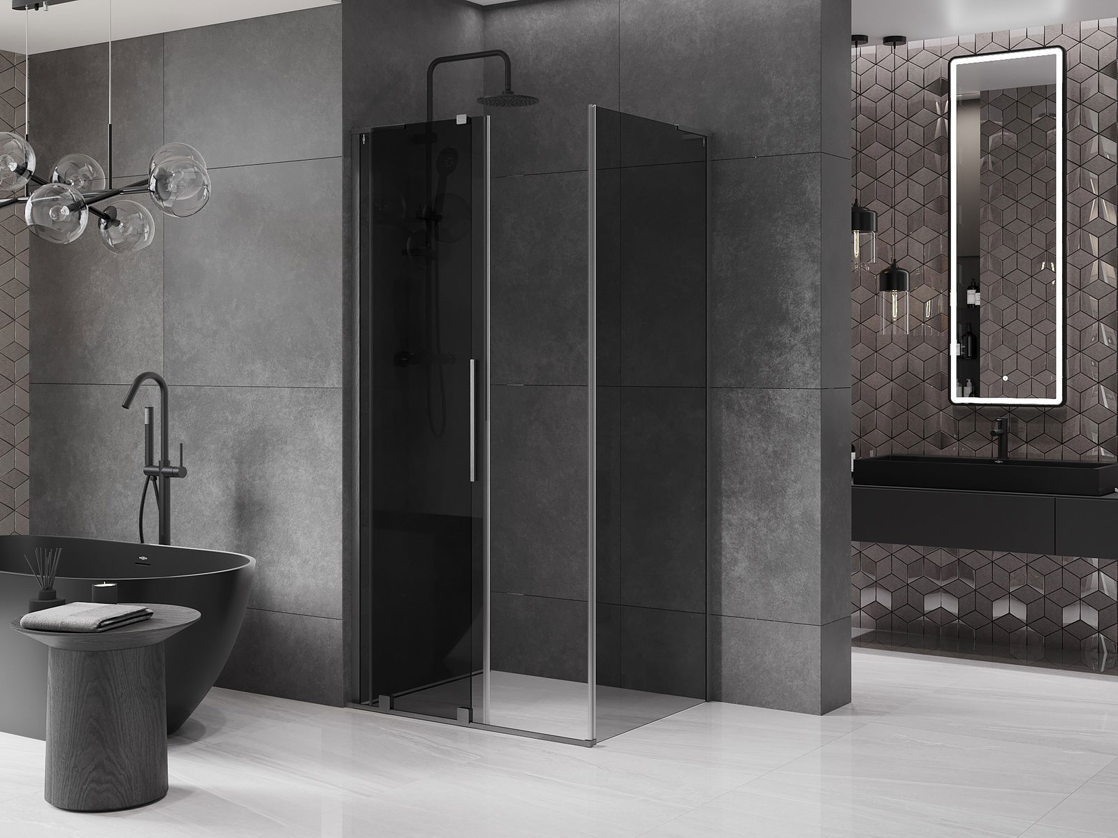 El práctico y cómodo asa está hecho de acero inoxidable. La forma moderna combinada con un acabado a juego con el color de los perfiles le da a todo un aspecto moderno y elegante, resaltando la estética de cada baño.